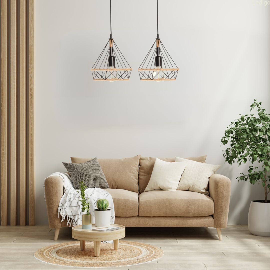 ORYGINALNY DESIGN -  styl loft z elementami boho stał się modnym trendem wnętrzarskim. W odpowiedzi przedstawiamy lampę w jutowym oplocie. Naturalny sznurek w ażurowej formie metalowego klosza sprawia, że lampa pasuje praktycznie w każdym wnętrzu.