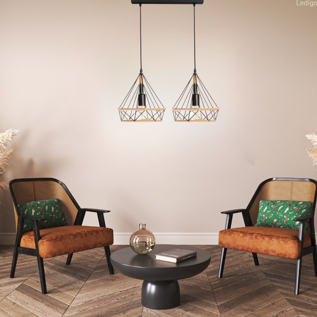 Lampa wisząca loft listwa podwójna GEO S BOHO sznur juta