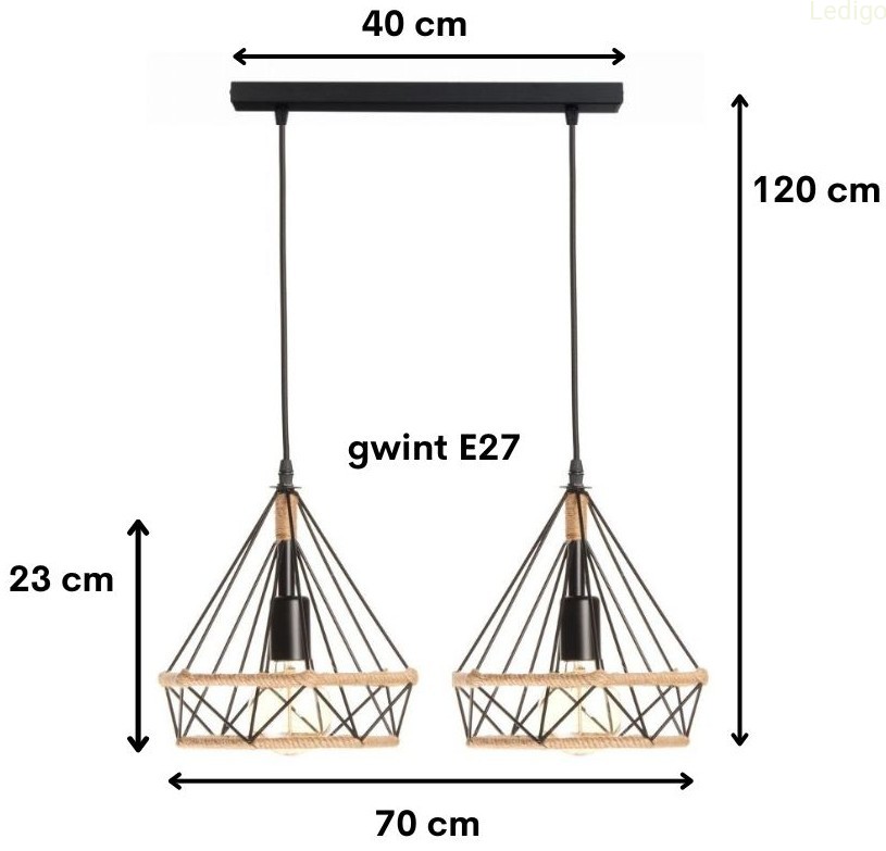 Rodzaj lampy: lampa sufitowa Dwuobwodowość: nie Rodzaj gwintu: E27 Styl: loft Tworzywo: metal Kolor klosza: czarny Kolor uchwytu: Czarny Kolor kabla: Czarny Kolor podsufitki: Czarna Wysokość całkowita: 120cm Szerokość całkowita: 70cm Szerokość klosza: 25 Wysokość klosza: 23cm Waga produktu: 2,200 kg Możliwość ściemniania: w zależności od żarówki Stopień ochrony IP: IP20 Regulacja wysokości: tak Napięcie: 230V Źródło światła w zestawie: nie