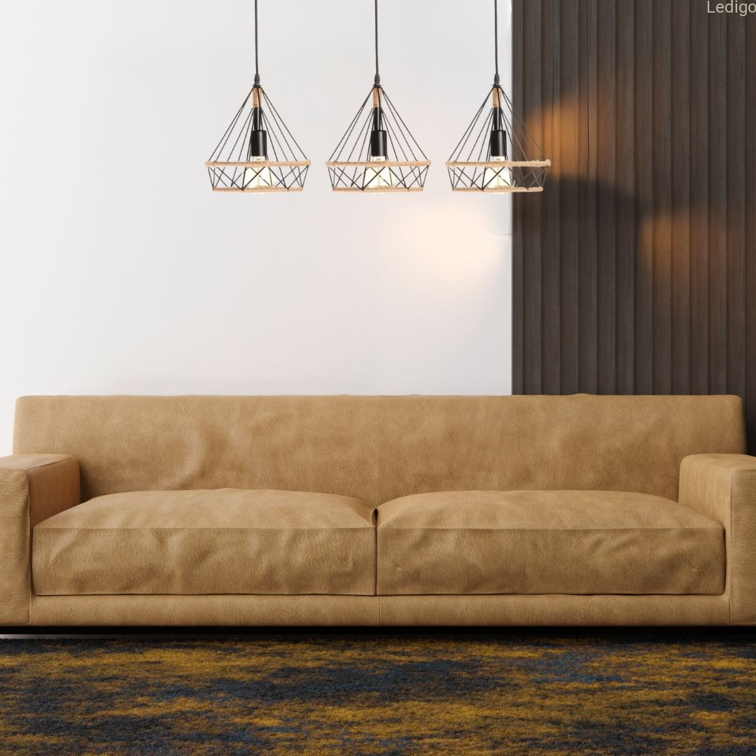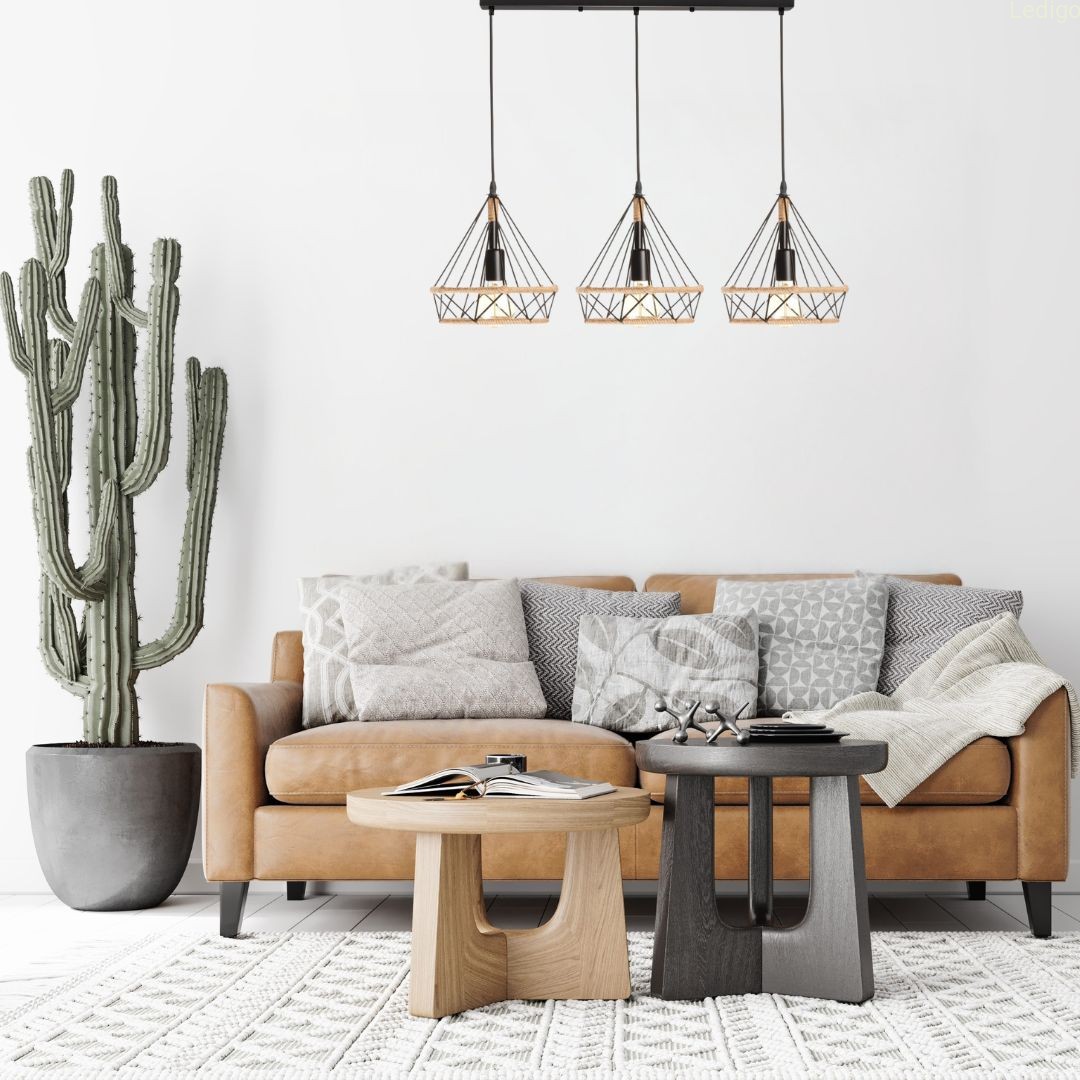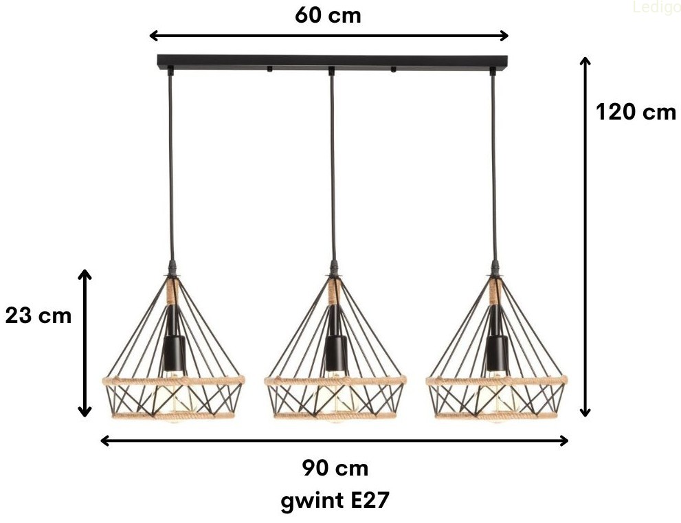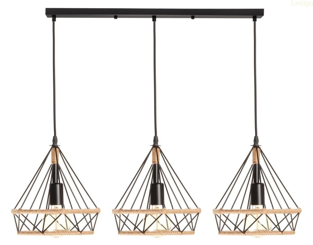Lampa wisząca loft listwa potrójna GEO S BOHO sznur juta