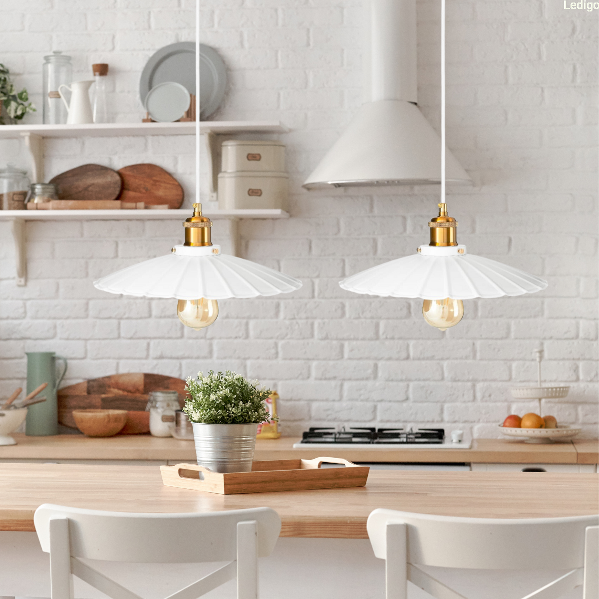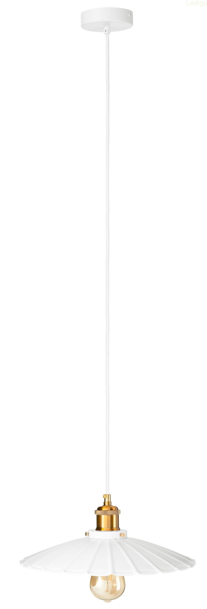 - Wyjątkowa estetyka - klosz lampy posiada delikatne karbowanie, metal malowany metodą proszkową w kolorze klasycznej bieli, aluminiowa oprawa w kolorze złota.