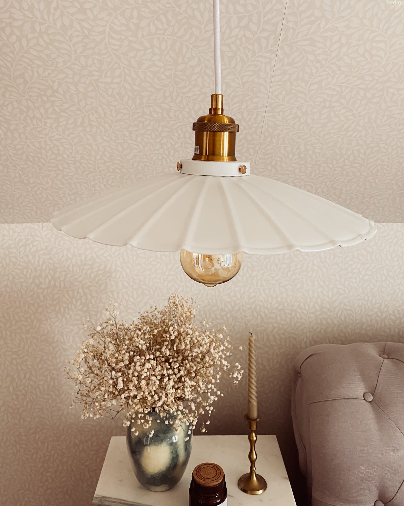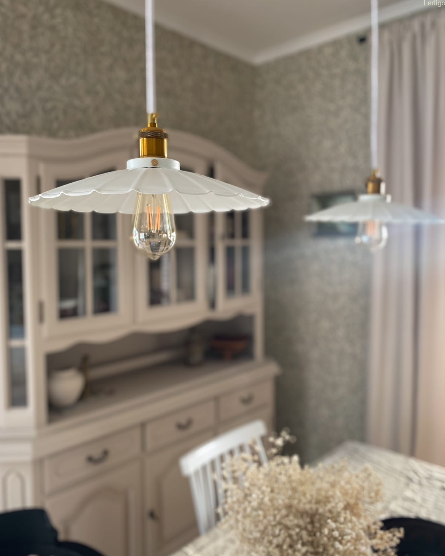 Lampa nawiązuje swoją formą do stylu JAPANDI. Minimalistyczny kształt otwartego klosza w klasycznej bieli znakomicie pasuje do nowoczesnych i klasycznych wnętrz. To jeden z tych modeli który będzie pasował do każdego typu pomieszczenia: kuchni, salonu, przedpokoju.