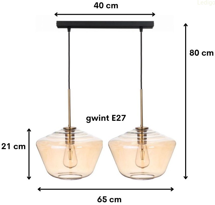 Lampa wisząca na listwie podwójna Paris szklana amber