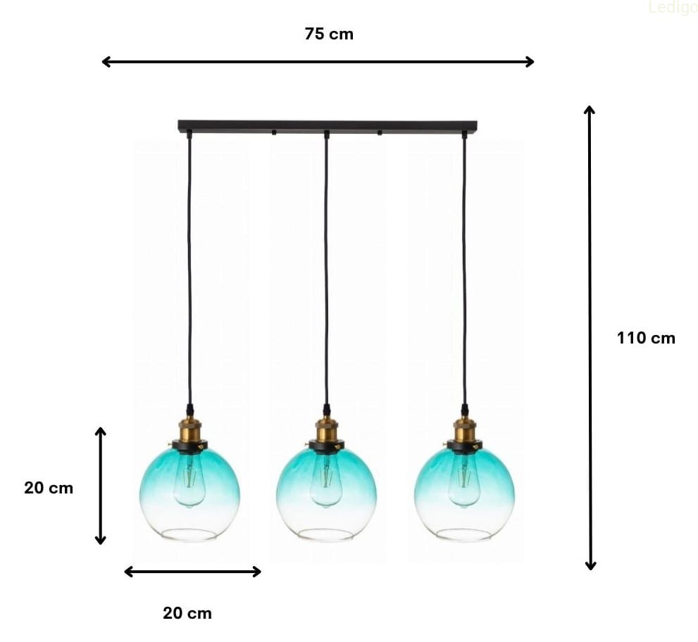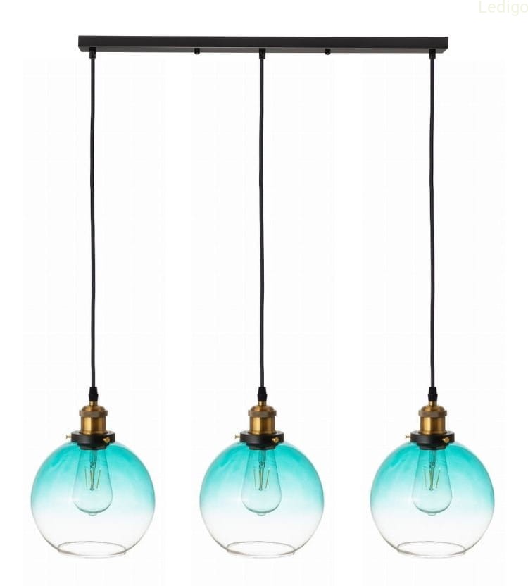 Lampa wisząca na listwie potrójna KULA szklana niebieska