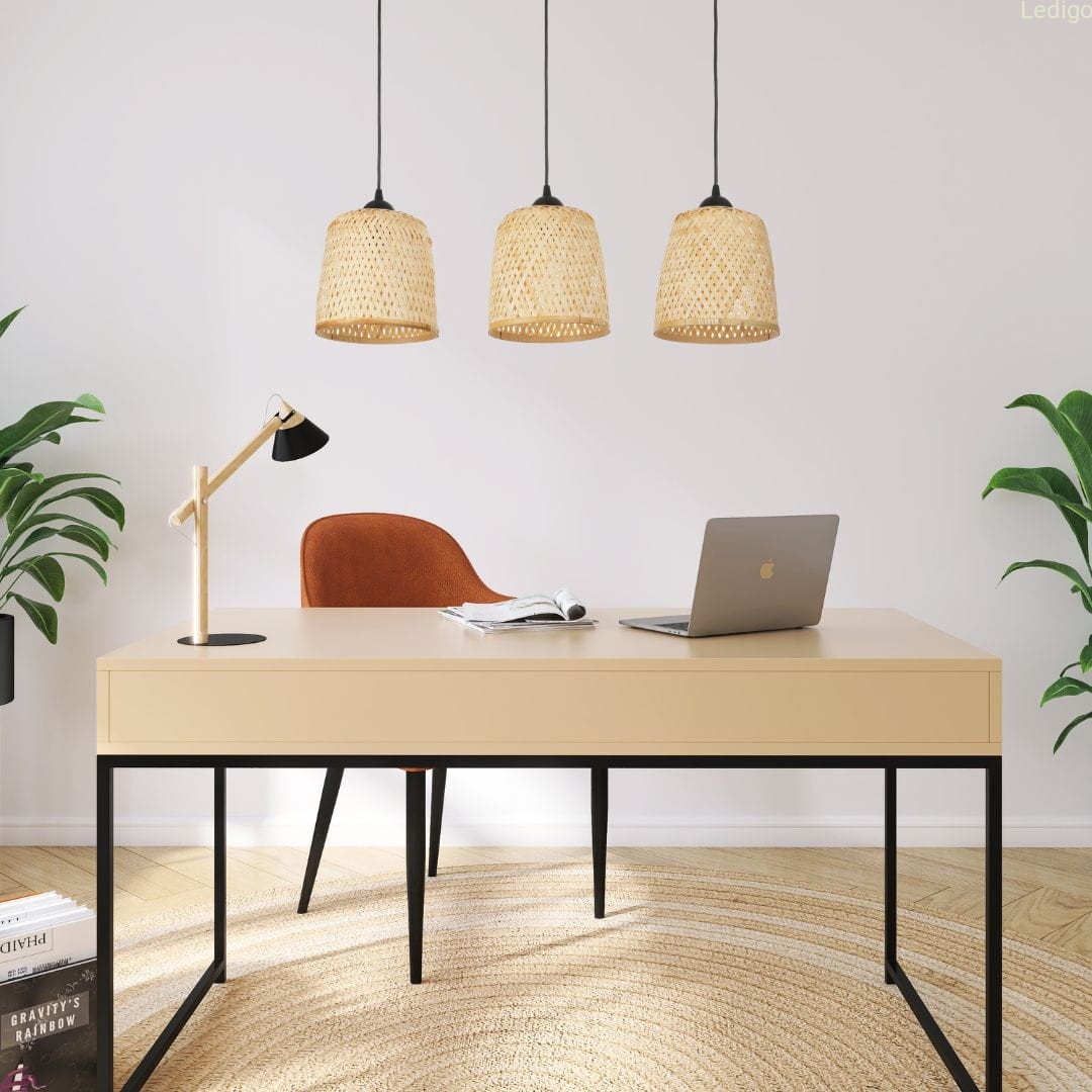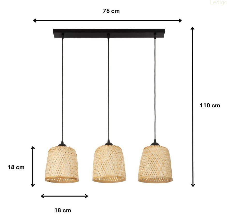 Lampa wisząca na listwie potrójny klosz bambusowy TH1C