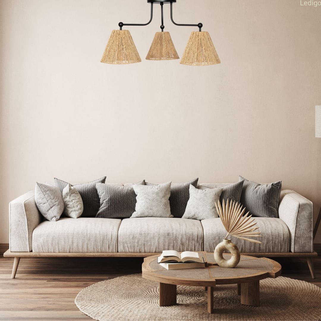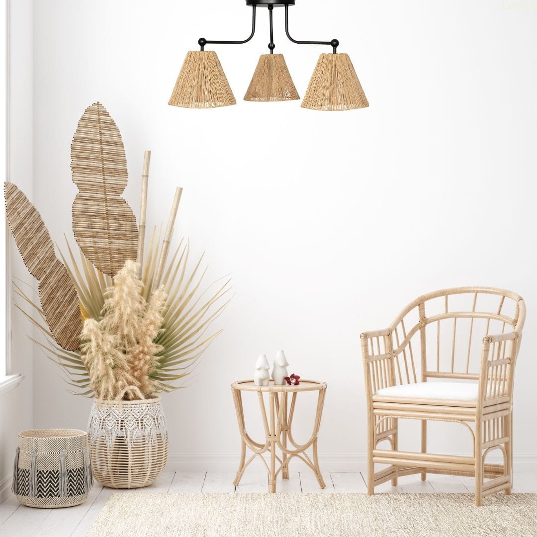 Jakość - lampa wykonana z dbałością o szczegóły. Abażury bambusowe na eleganckich przewodach.