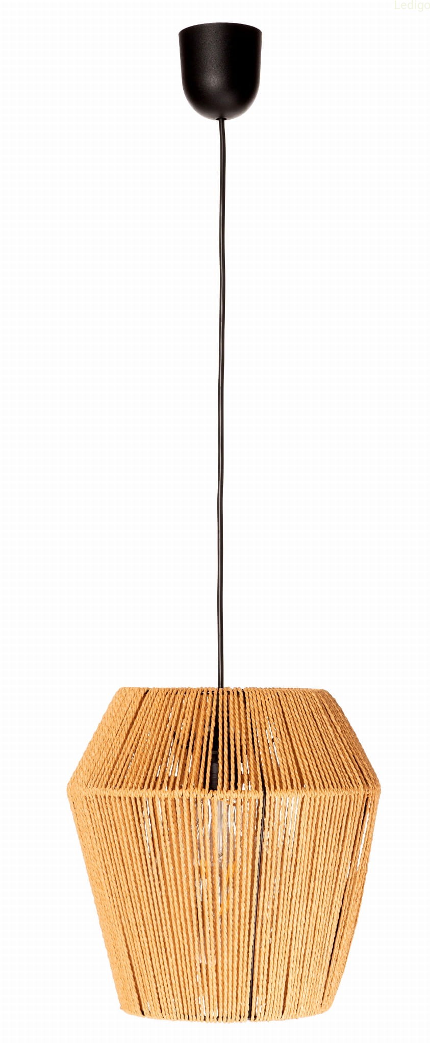 Przedstawiona lampa wisząca pochodzi z naszej kolekcji strunowych lamp BOHO. Posiada metalowy klosz opleciony specjalnie impregnowanym, wytrzymałym papierowym sznurkiem w naturalnym kolorze beżu. Eko design lampy plecionej sprawia że świetnie wpisuje się ona we wnętrza inspirowane naturą. Tworzą wyspiarski klimat nadają przytulności i klimatu doświetlanym pomieszczeniom.