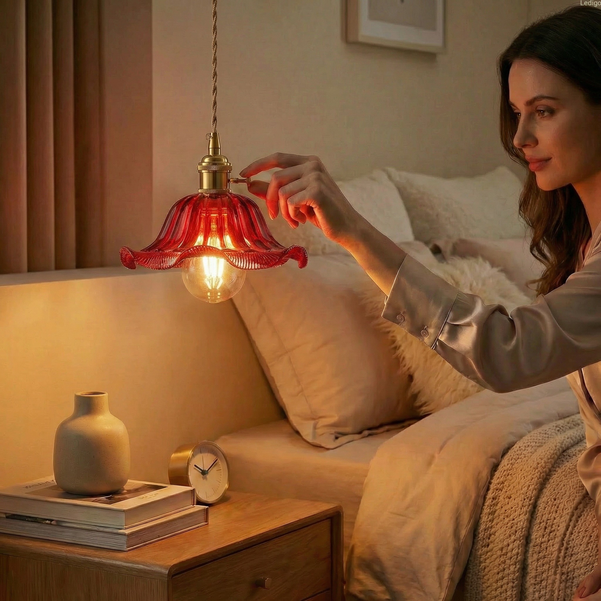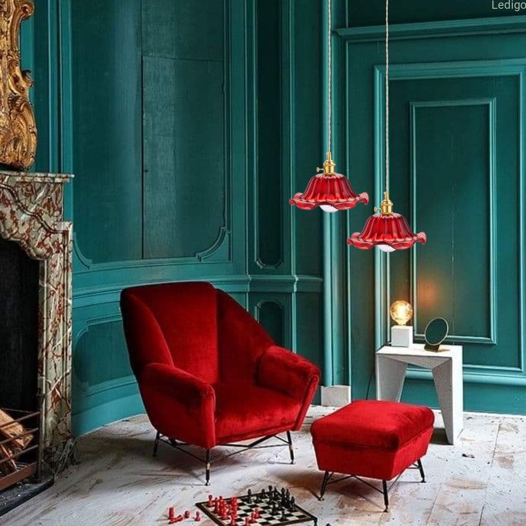 Lampa wisząca Flower Red polskiej marki Ledigo to stylowe oświetlenie o designie nawiązującym do stylu orientalnego oraz retro. Takie oświetlenie nada wnętrzu charakteru. Lampa pięknie wpisuje się w odważne aranżacje, a także w stonowane wystroje wnętrz. Świetnie pasuje do kuchni salonu czy przedpokoju. Znakomity efekt łatwo uzyskać komponując lampę w zestawie z tej serii.