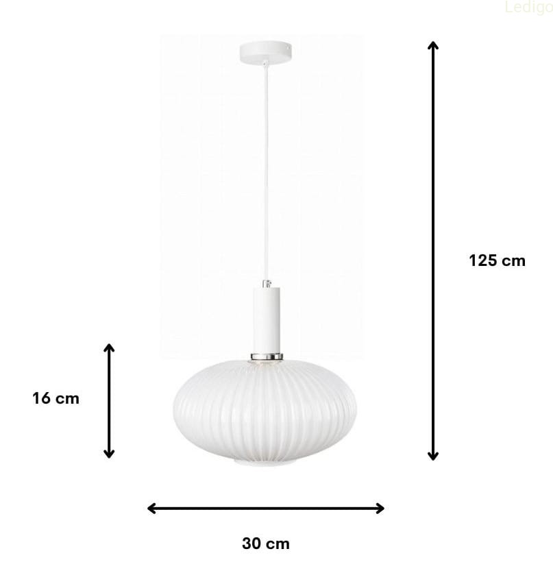 Ten wyjątkowy model wyróżnia ryflowana forma (falowane szkło) i aluminiowa oprawa w białym kolorze