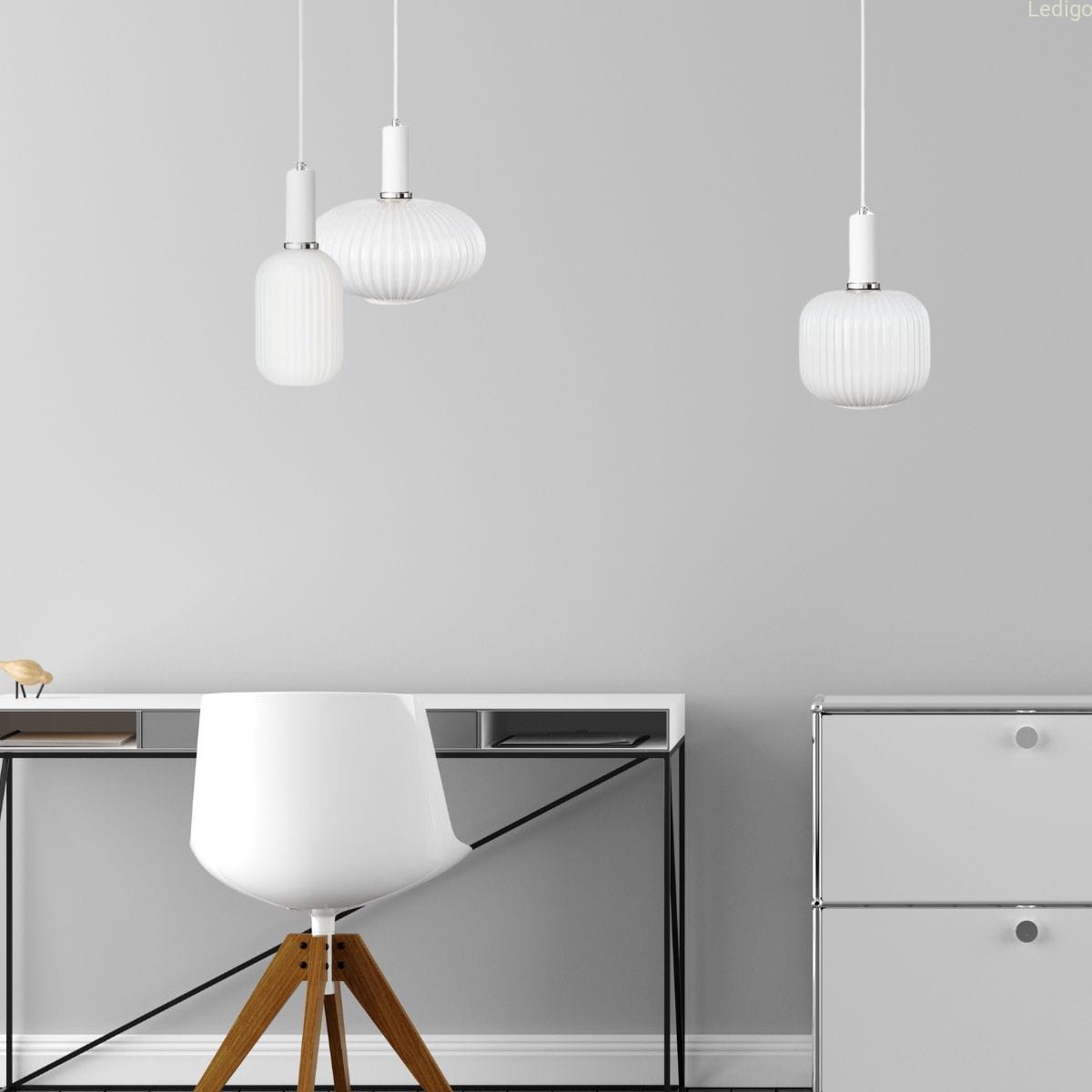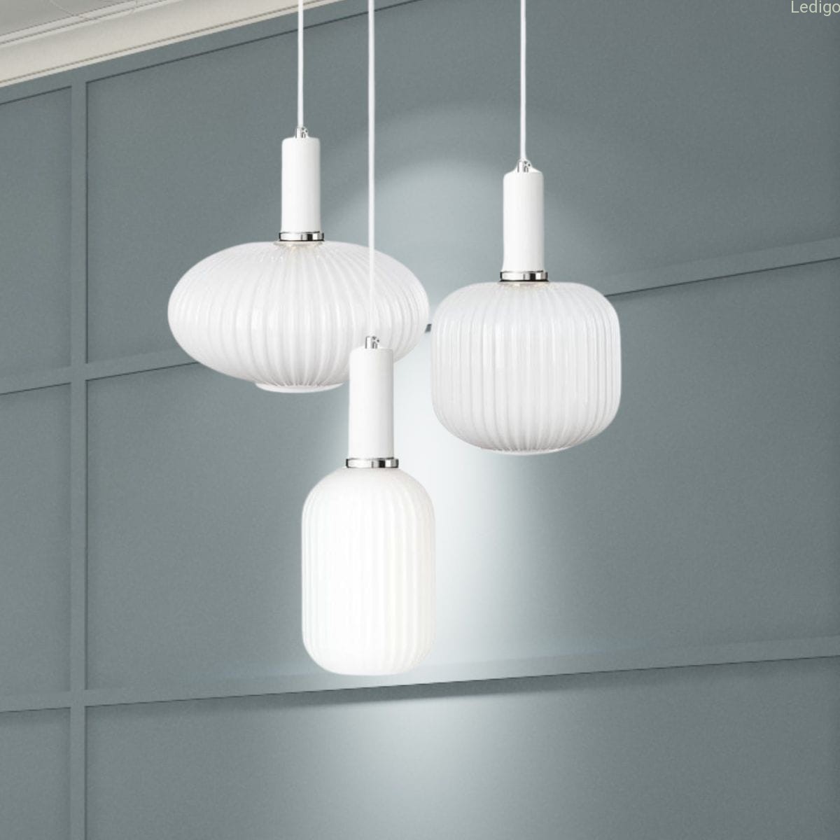 MLECZNO-BIAŁA LAMPA O RYFLOWANEJ FORMIE