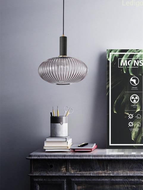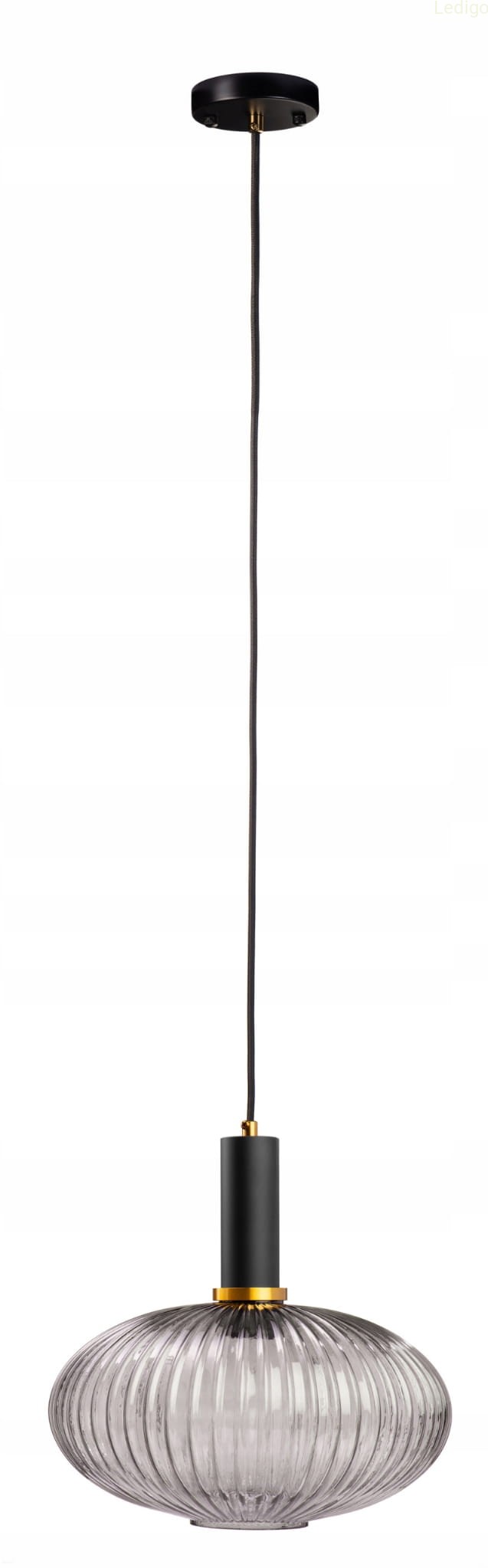 EKSKLUZYWNA LAMPA O PIĘKNYM KARBOWANYM KLOSZU W GRAFITOWYM WYBARWIENIU SZKŁA Z CZARNĄ OPRAWĄ