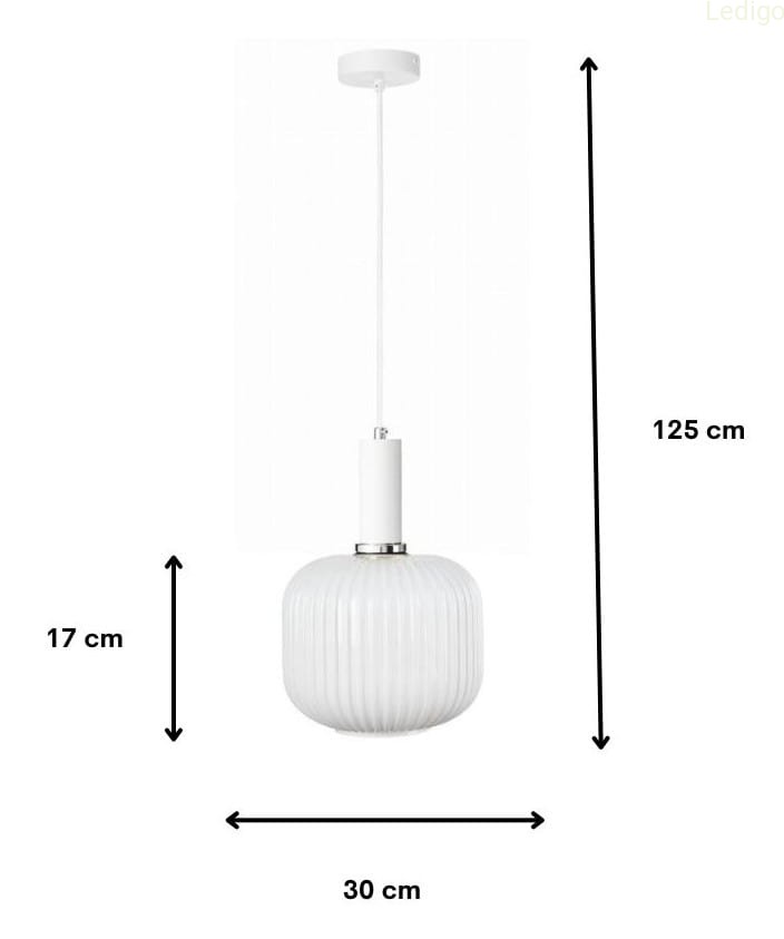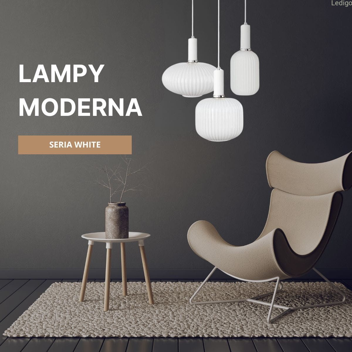 Ten wyjątkowy model wyróżnia ryflowana forma (falowane szkło) i aluminiowa oprawa w białym kolorze