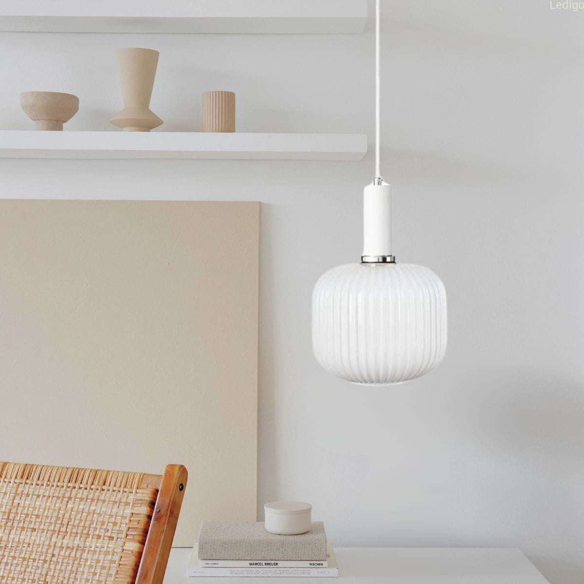 MLECZNO-BIAŁA LAMPA O RYFLOWANEJ FORMIE