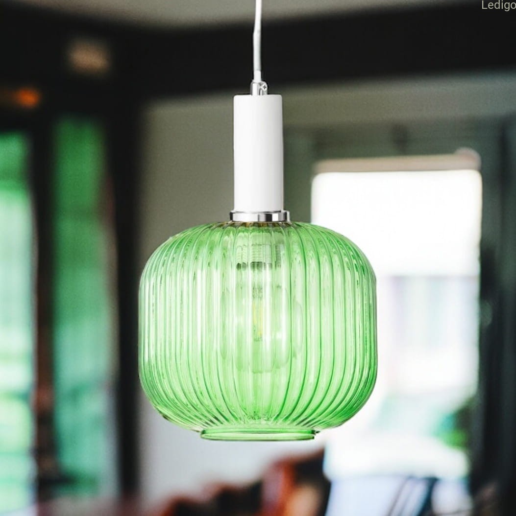 Lampa wisząca szklana MODERNA zielona biała zawieś