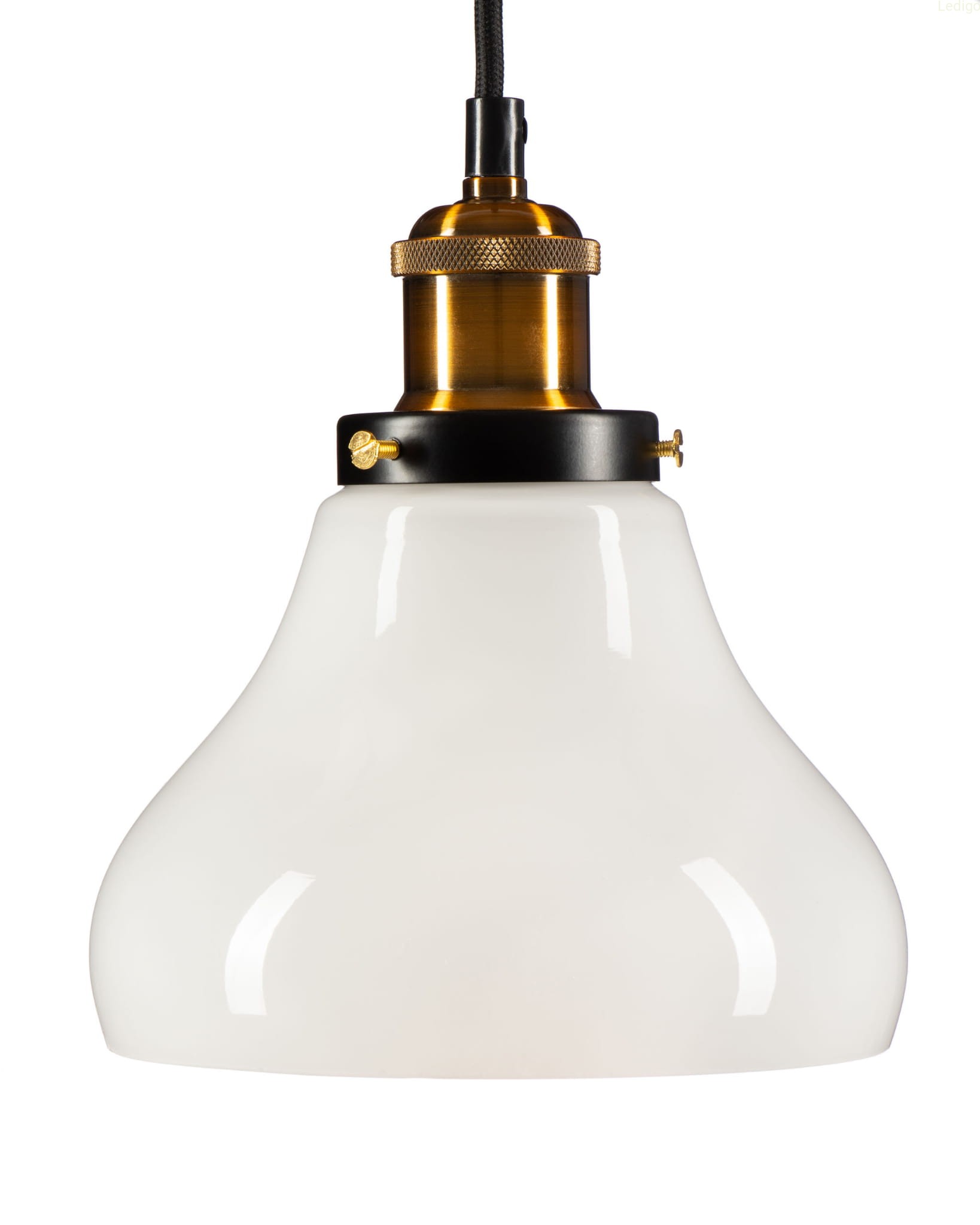 JAKO PRODUCENT LAMP I ŻARÓWEK LED PREZENTUJEMY SZKLANY MLECZNY KLOSZ W STYLU VINTAGE Z PIĘKNĄ OPRAWĄ W ZŁOTYM KOLORZE