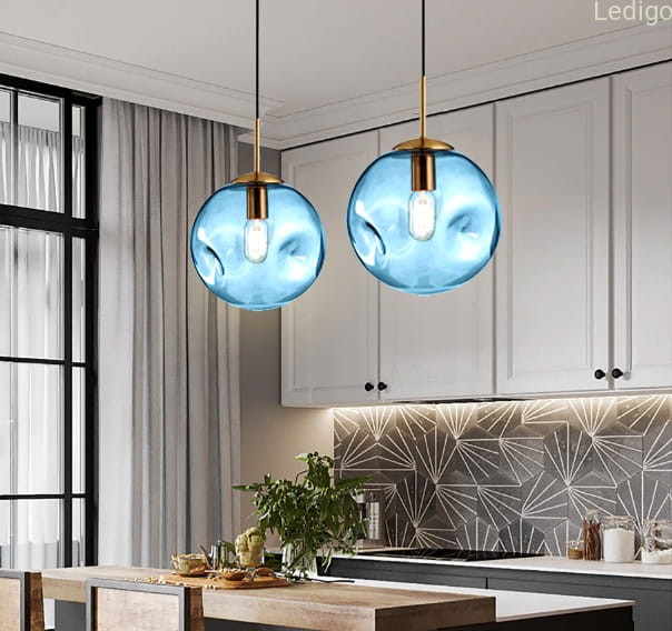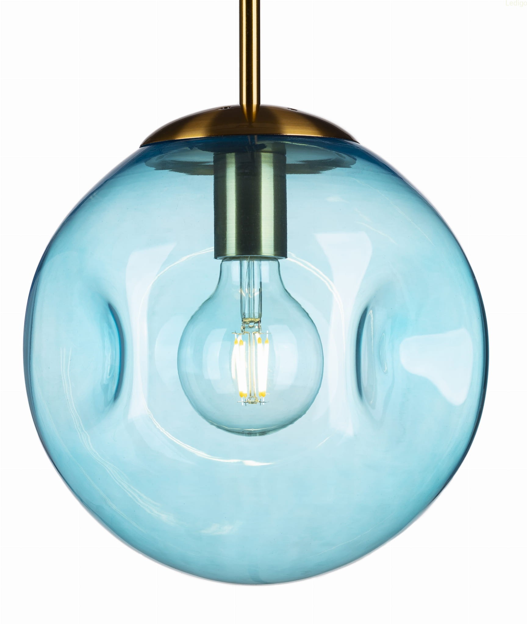 Dobierając źródło światła w ciepłej barwie lampa po zaświeceniu nabierze turkusowego odcieniu szkła. Chcąc zachować niebieską warto zdecydować się na neutralne bądź zimne światło.