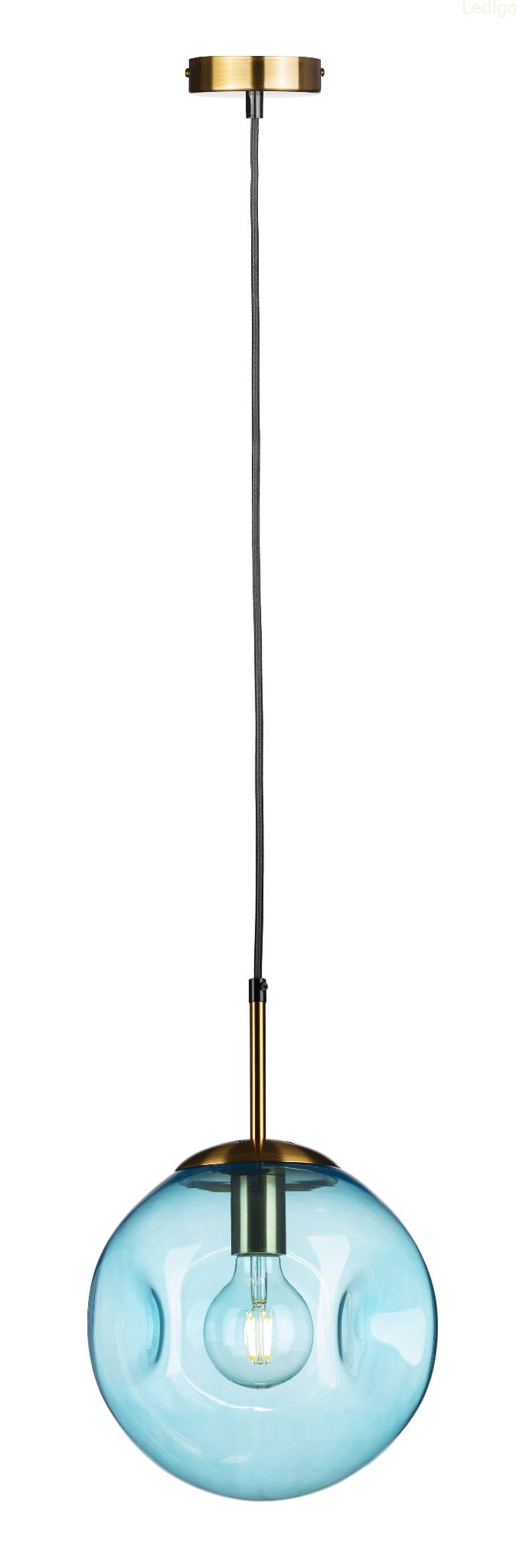 Zarówno oprawa jak i maskownica wykonane są z metalu w kolorze złota. Klosz posiada niebieskie wybarwienie szkła. Przewód lampy jest w estetycznym czarnym oplocie.