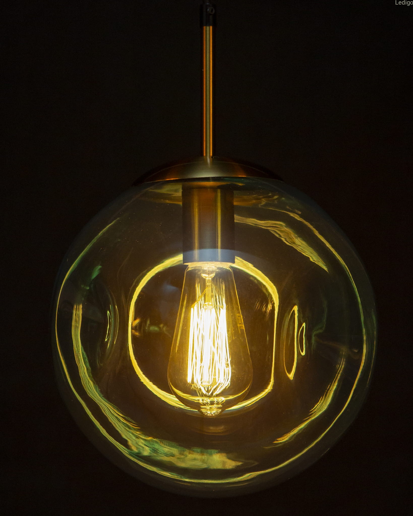 Prezentujemy Państwu nowoczesny model szklanej lampy w kształcie zamkniętej kuli. Model wyróżniają wgłębienia w szkle, które dodają lampie finezji i oryginalnego charakteru.