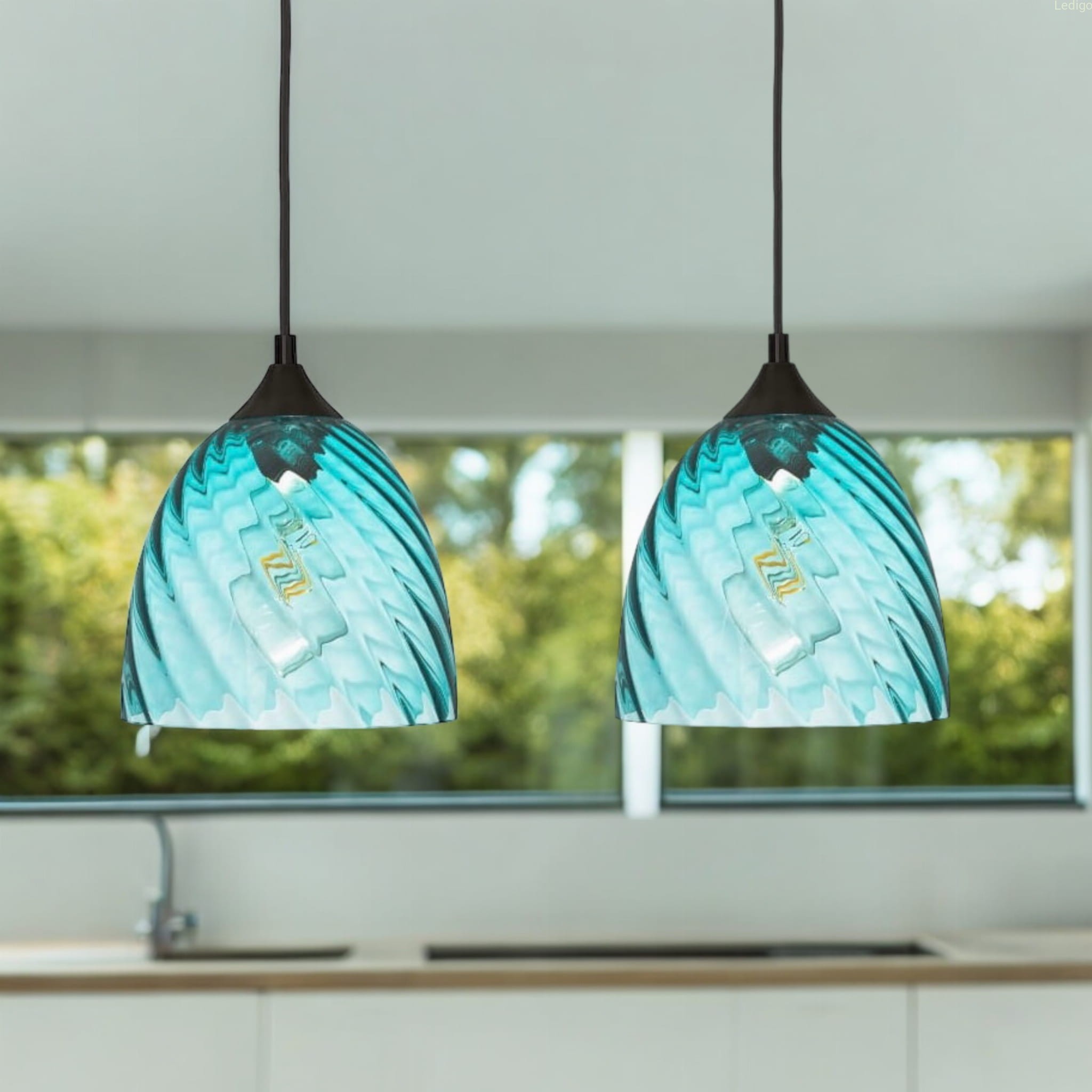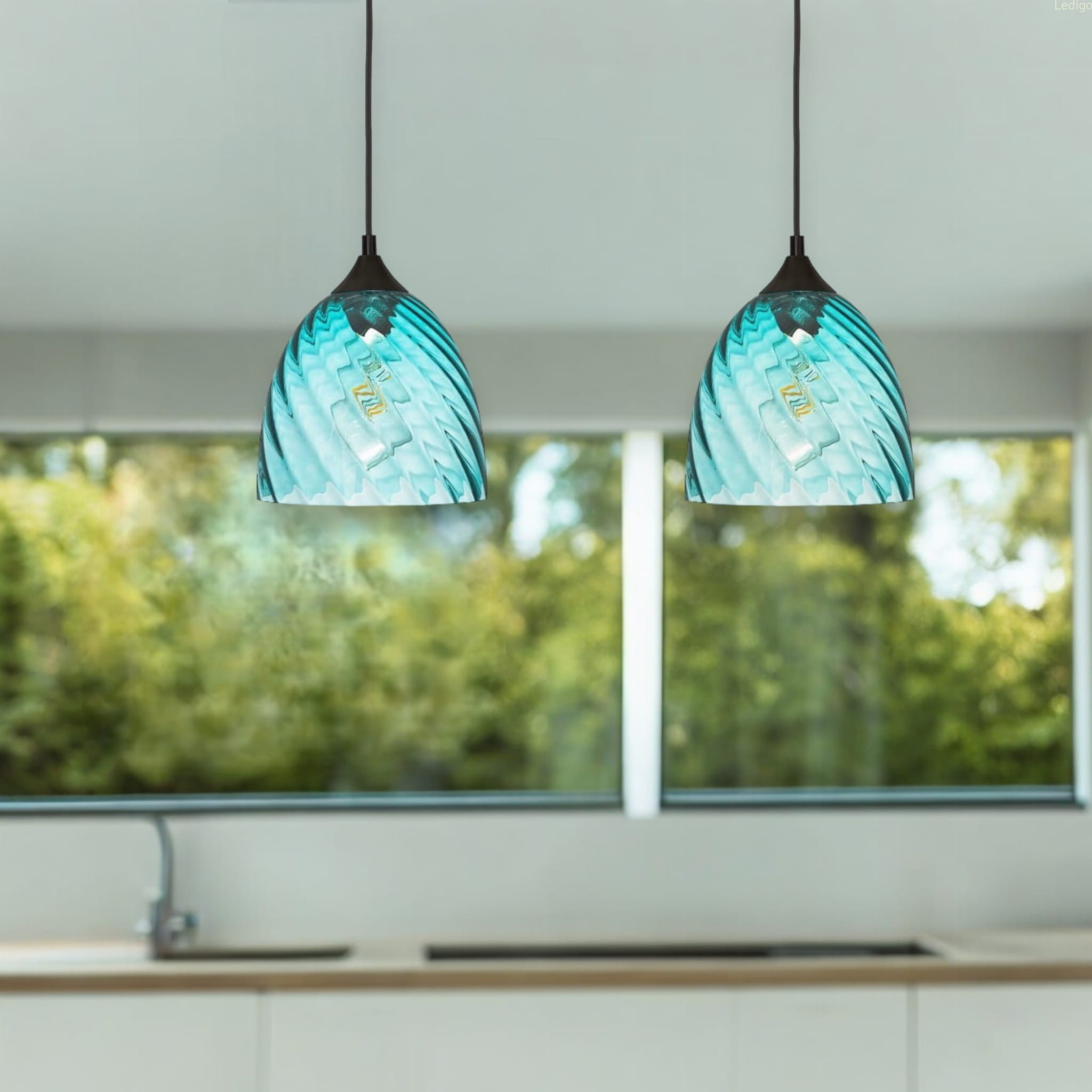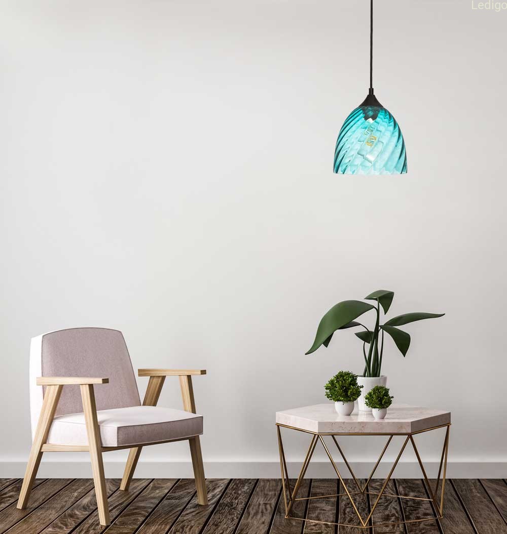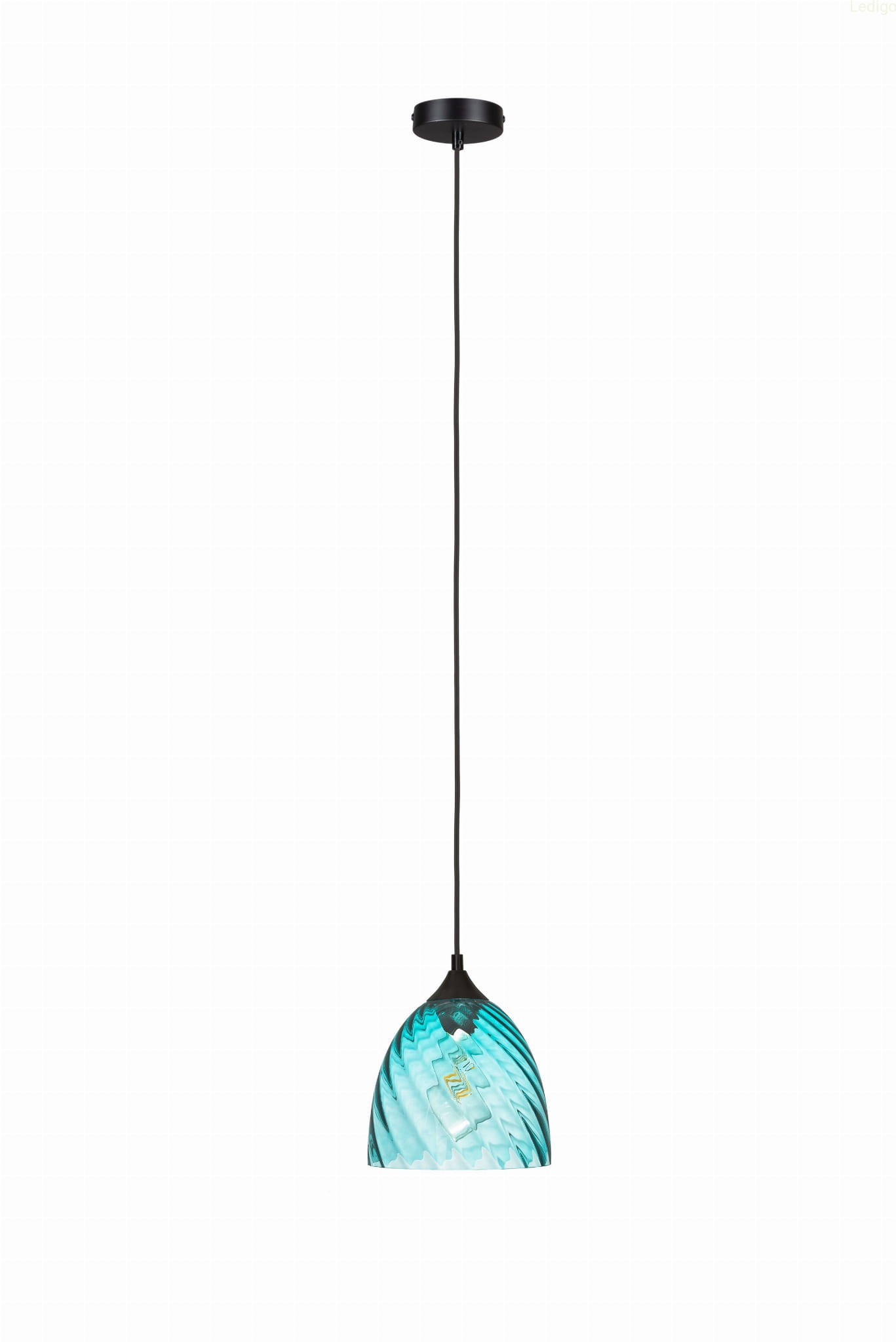 Rodzaj gwintu: E27 Rodzaj lampy: lampa wisząca Dwuobwodowość: nie Rodzaj gwintu: E27 Styl: nowoczesny Tworzywo: szkło Kolor klosza: niebieski Kolor uchwytu: Czarny Kolor kabla: Czarny Kolor podsufitki: Czarna Wymiary: wysokość klosza 19cm, średnica dolnego otworu klosza 19,5cm, średnica otworu montażowego 4cm, maksymalna wysokość lampy 119cm Waga produktu: 1,200 kg Regulacja wysokości: tak Napięcie: 230V Źródło światła w zestawie: nie Czas realizacji: 24h