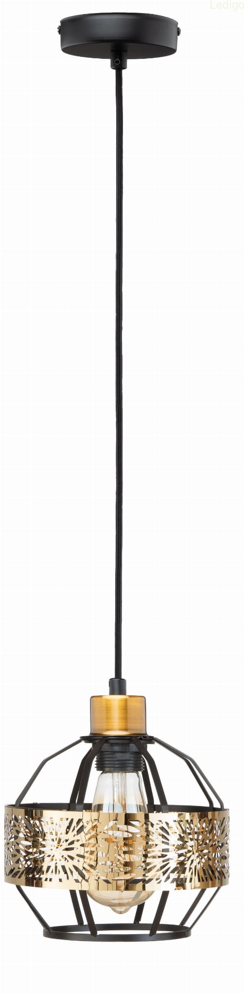 Oprócz klosza lampa wyposażona jest w jakościowe komponenty wykonane z metalu. Podsufitka ma kolor matowej czerni natomiast oprawka jest w pięknym kolorze starego złota. Kabel posiada estetyczny poliestrowy oplot.