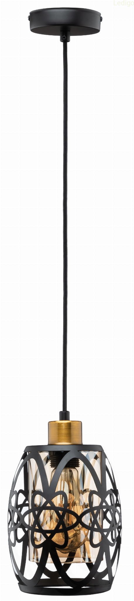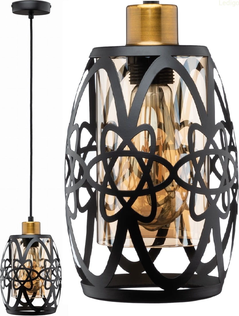 Oprócz klosza lampa wyposażona jest w jakościowe komponenty wykonane z metalu. Podsufitka ma kolor matowej czerni natomiast oprawka jest w pięknym kolorze starego złota. Kabel posiada estetyczny poliestrowy oplot.