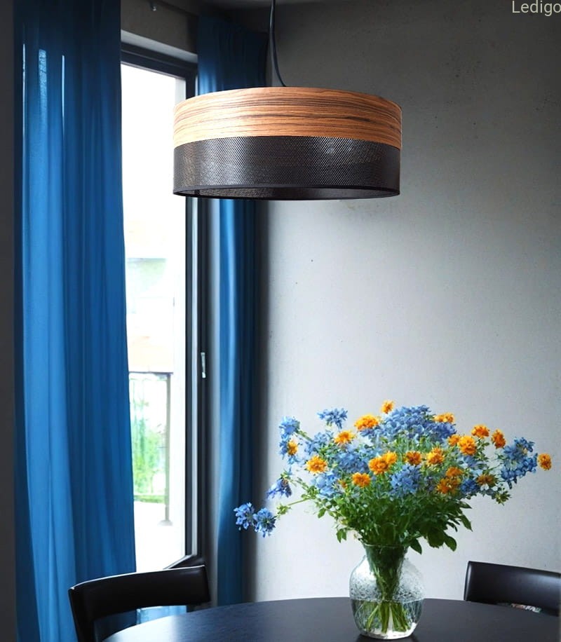 Lampa wisząca z abażurem ażurowa ORO fornirowana 40cm ZLA7217