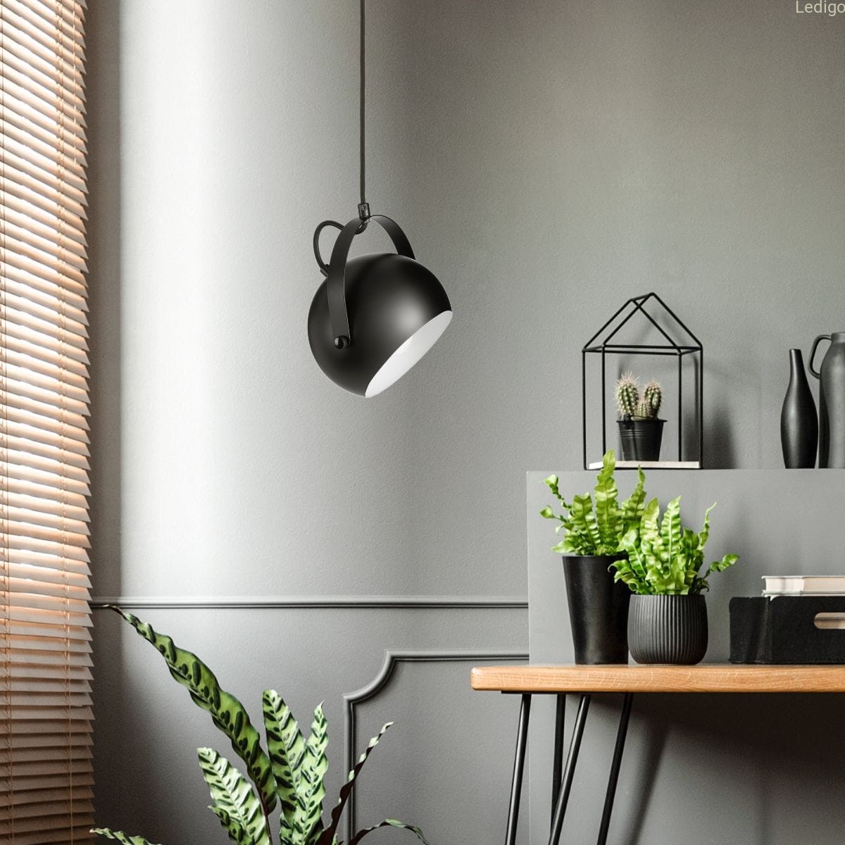 Lampa wisząca z uchwytem LEO czarna okrągła metalowa loft