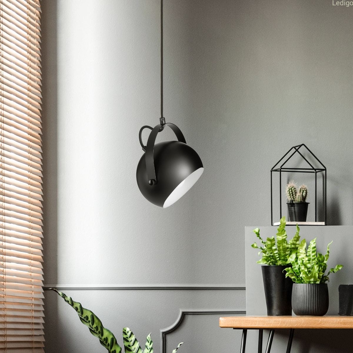 Wyszukana estetyka - satynowa czerń, biały środek i uchwyt sprawiają że lampa wygląda designersko.