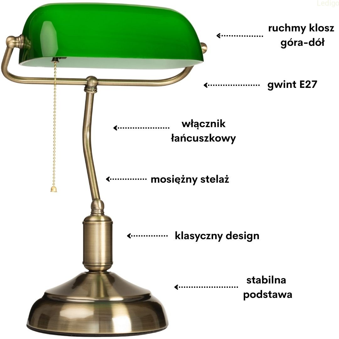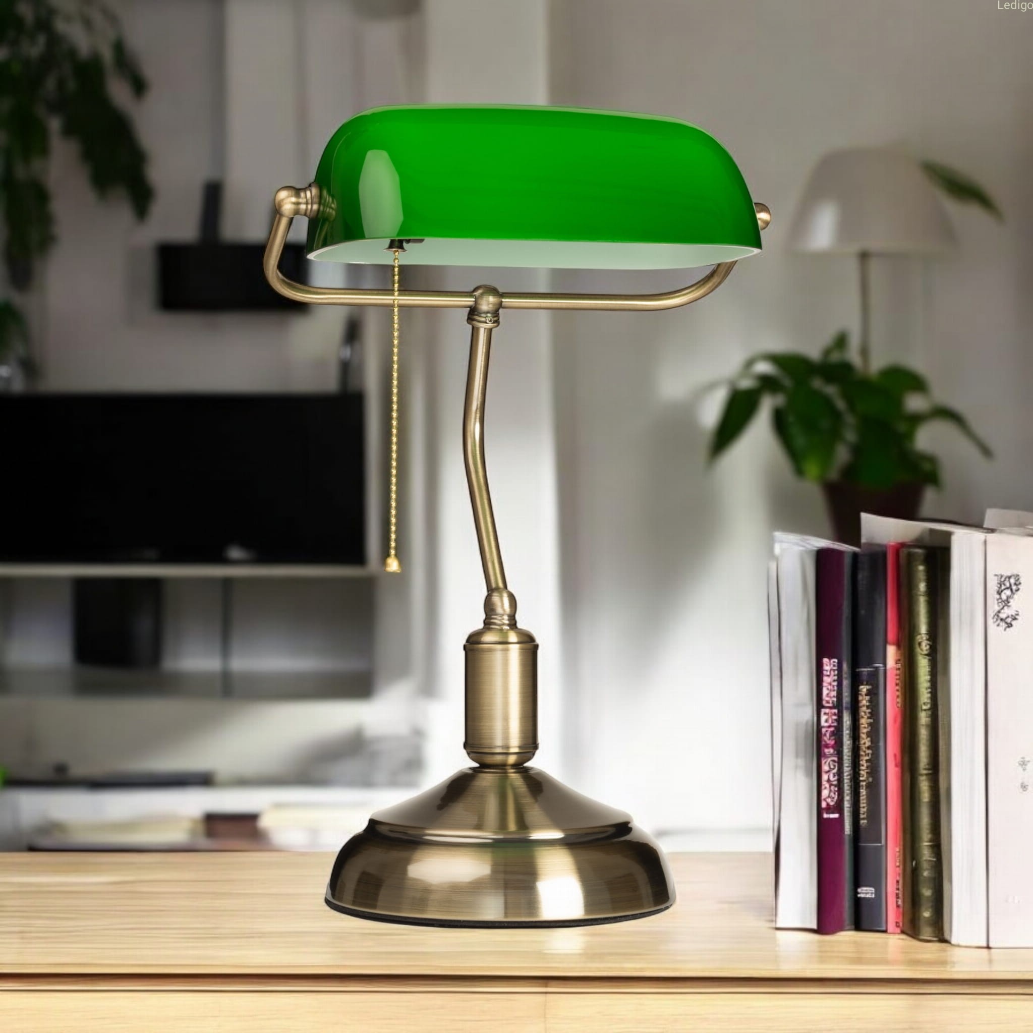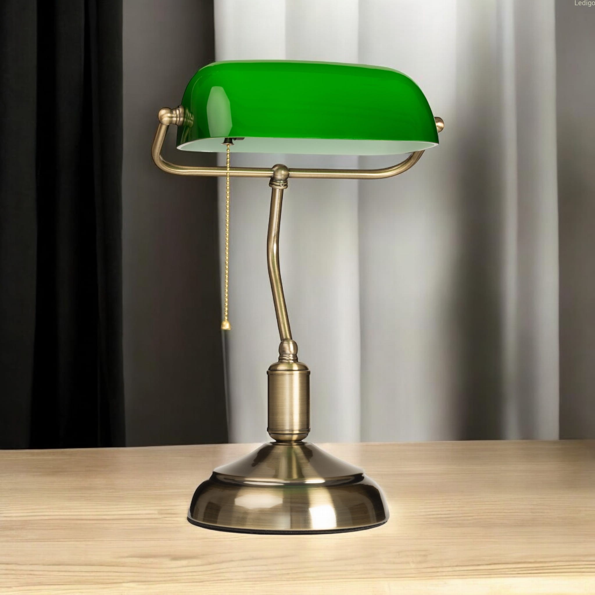 Lampa bankierska to klasyka elegancji, stylowy i bardzo szlachetny element każdego biura, gabinetu, pokoju dziennego, czy pokoju hotelowego.