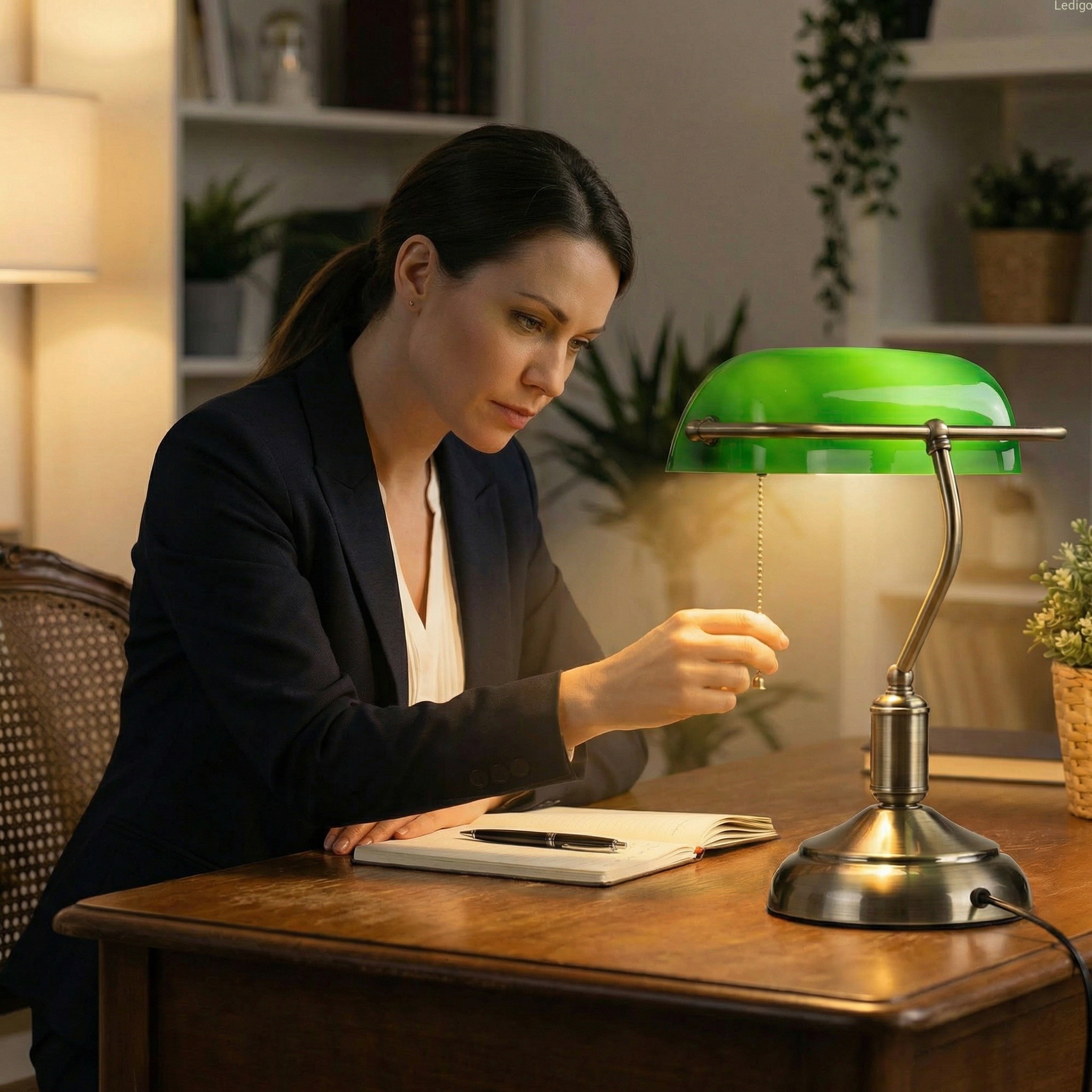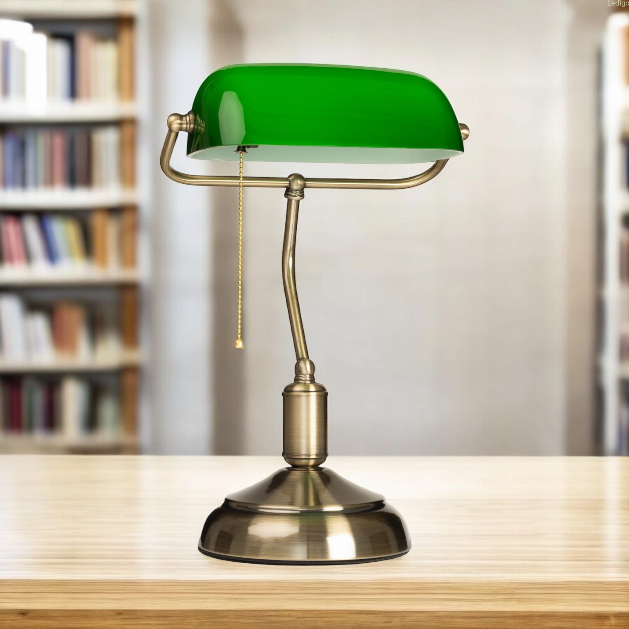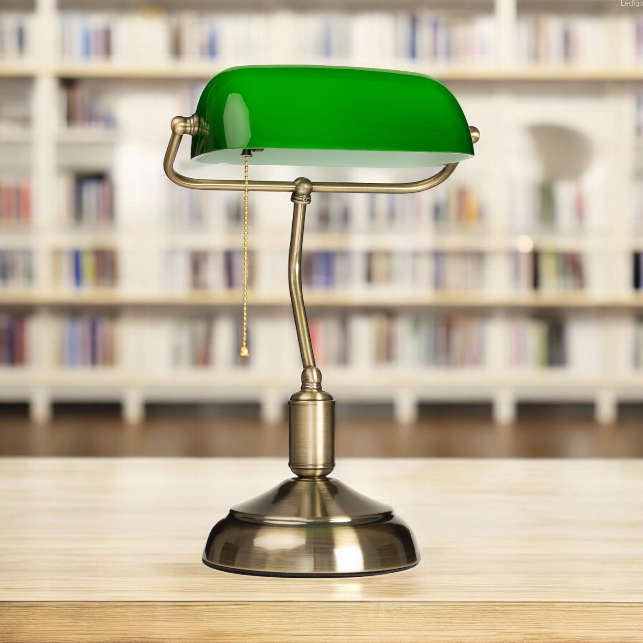 Lampa bankierska to klasyka elegancji, stylowy i bardzo szlachetny element każdego biura, gabinetu, pokoju dziennego, czy pokoju hotelowego.
