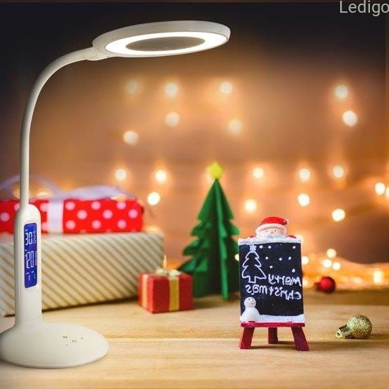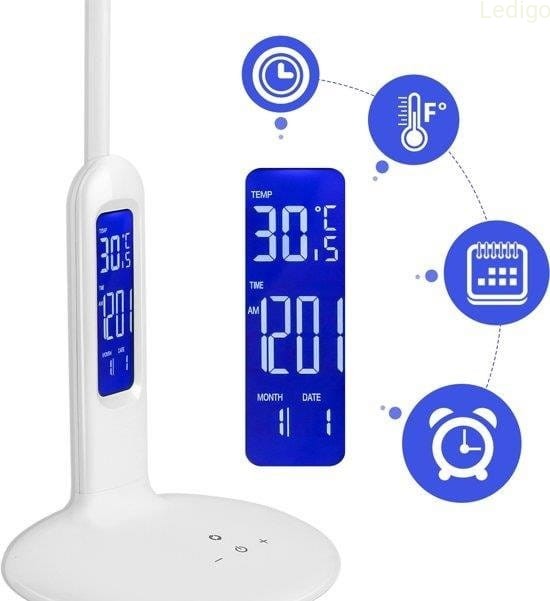 Lampka biurkowa LED z zegarem biała regulowana wielofunkcyjna