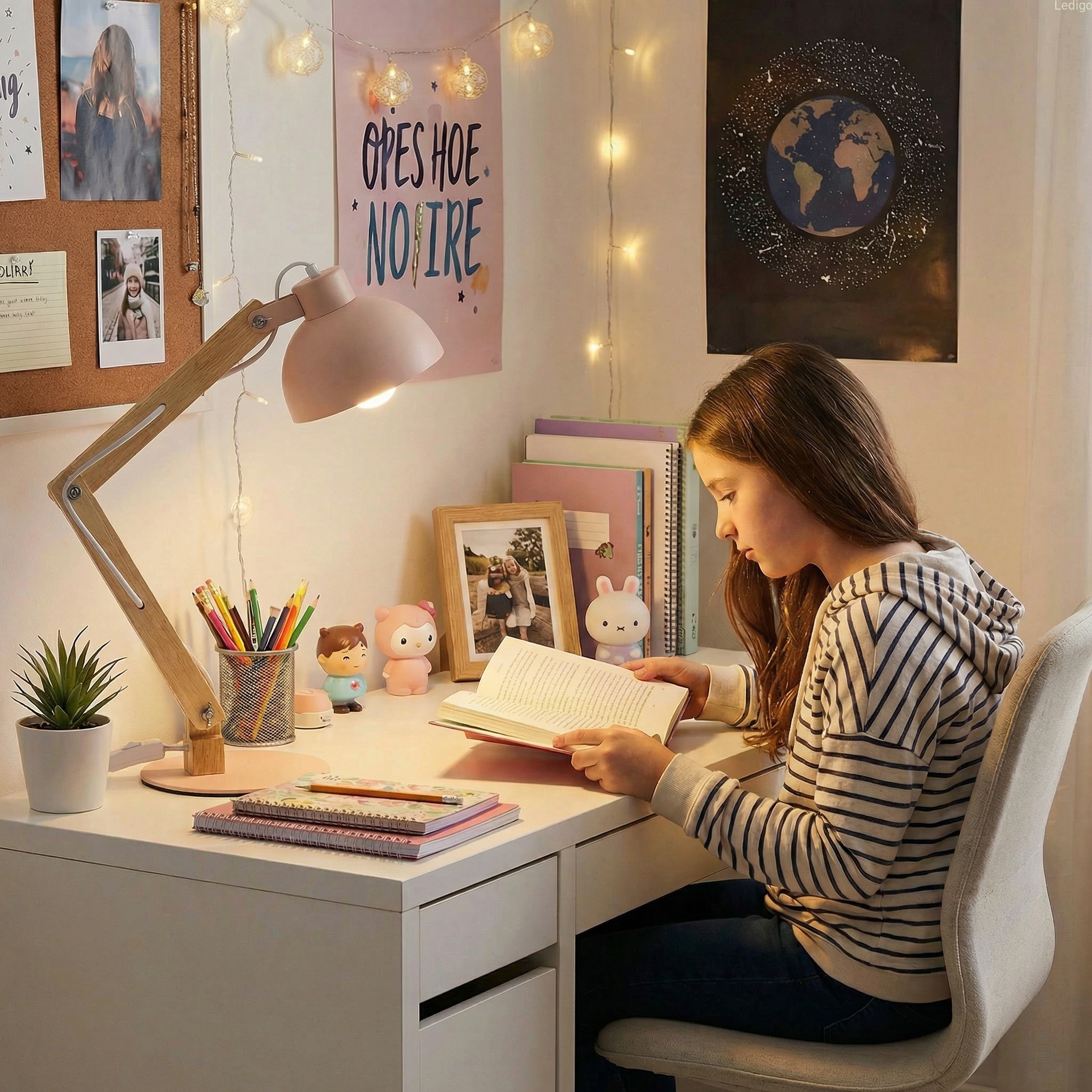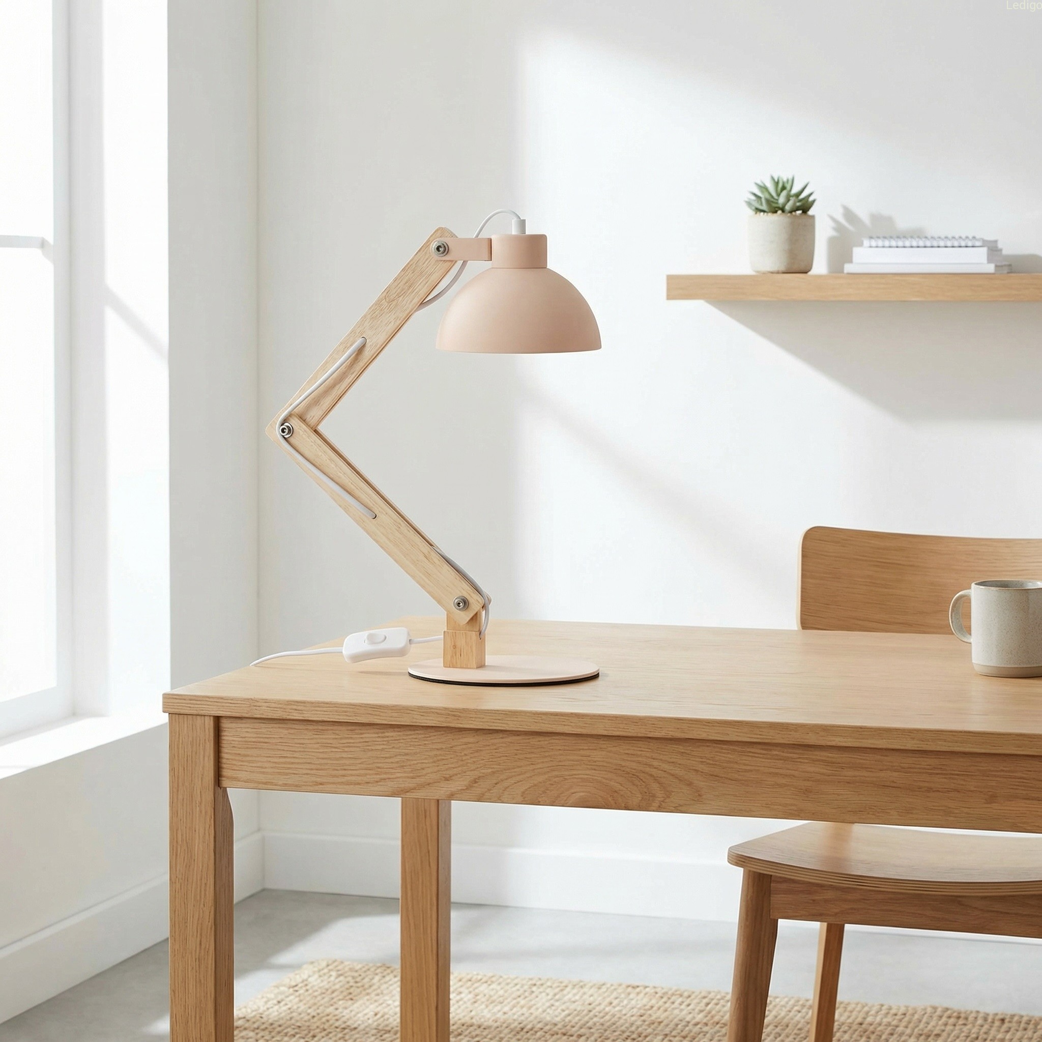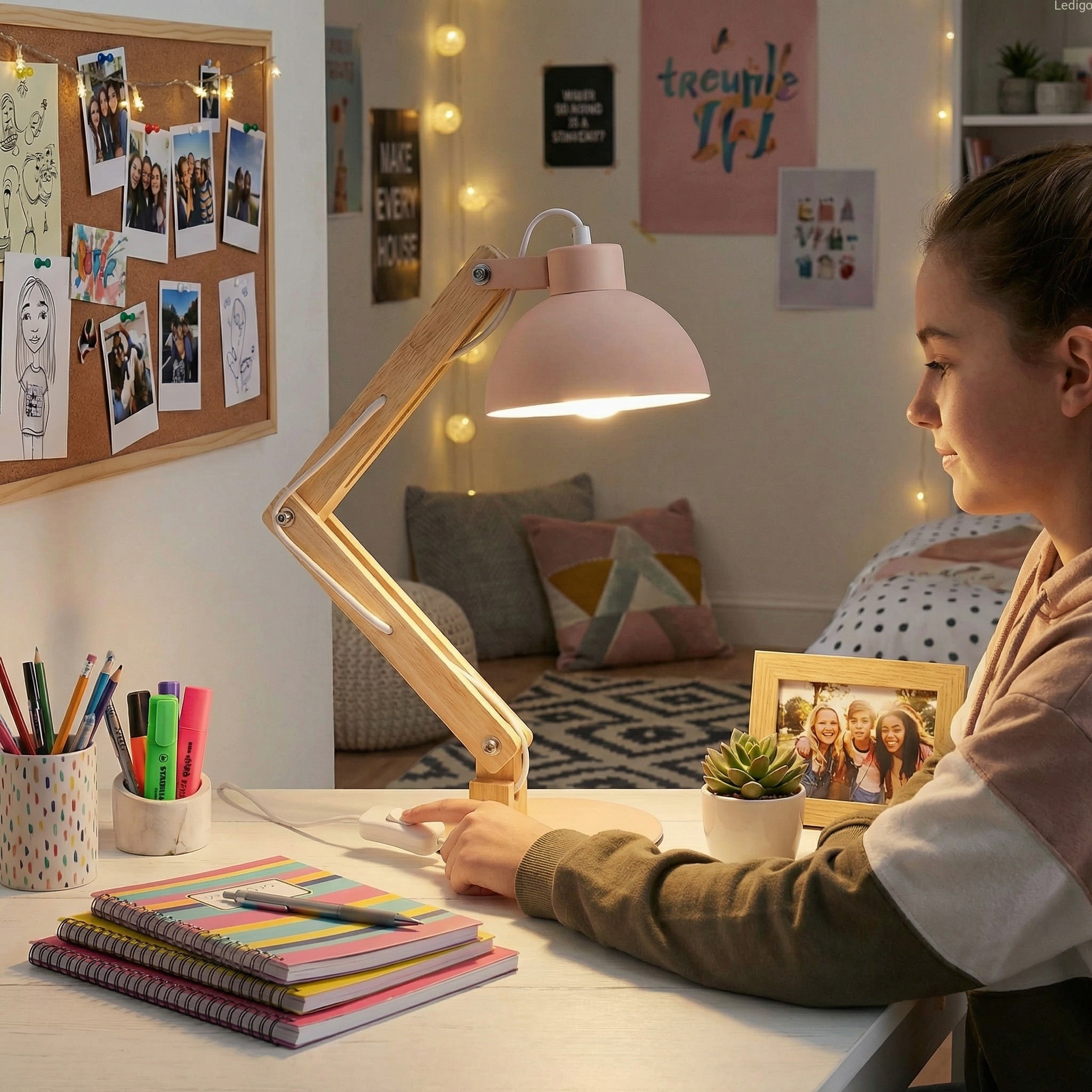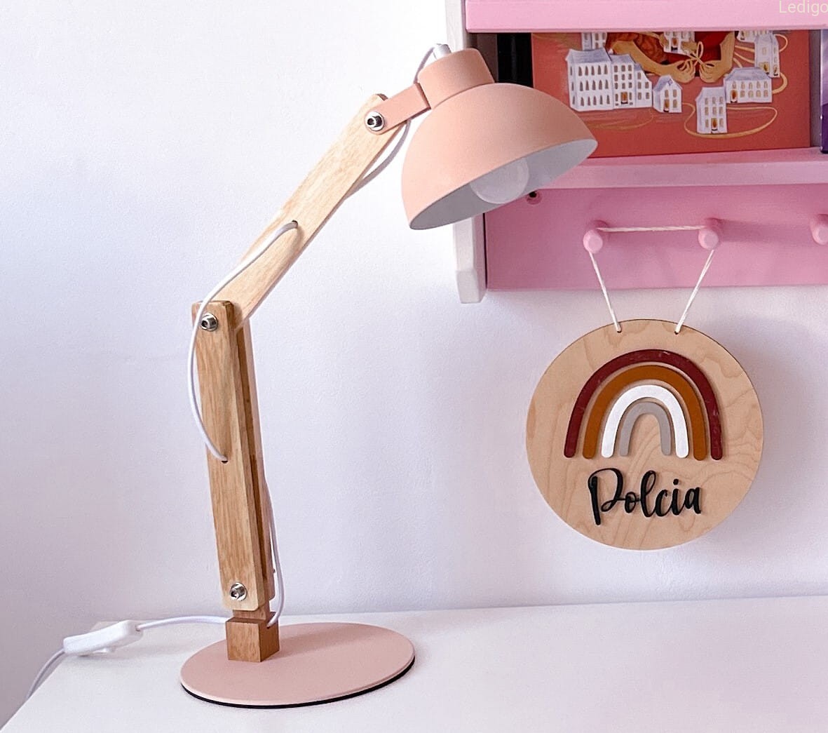 Lampka biurkowa Junior - piękny skandynawski styl w pastelowych odcieniach - metal łączony z drewnem. Idealna dla potrzebnych młodszych dzieci.