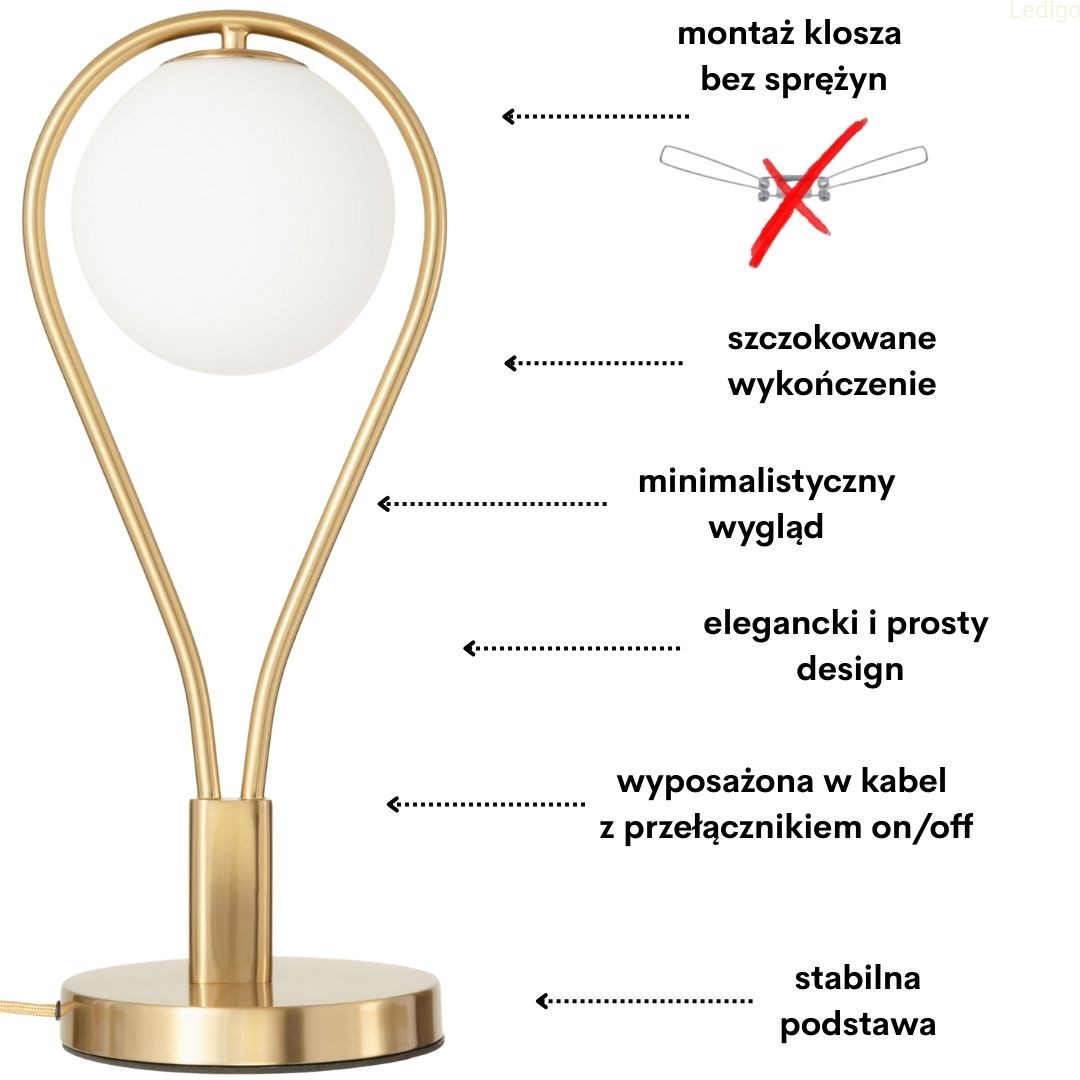 Lampka nocna stołowa elegancka złota Milano Rosa
