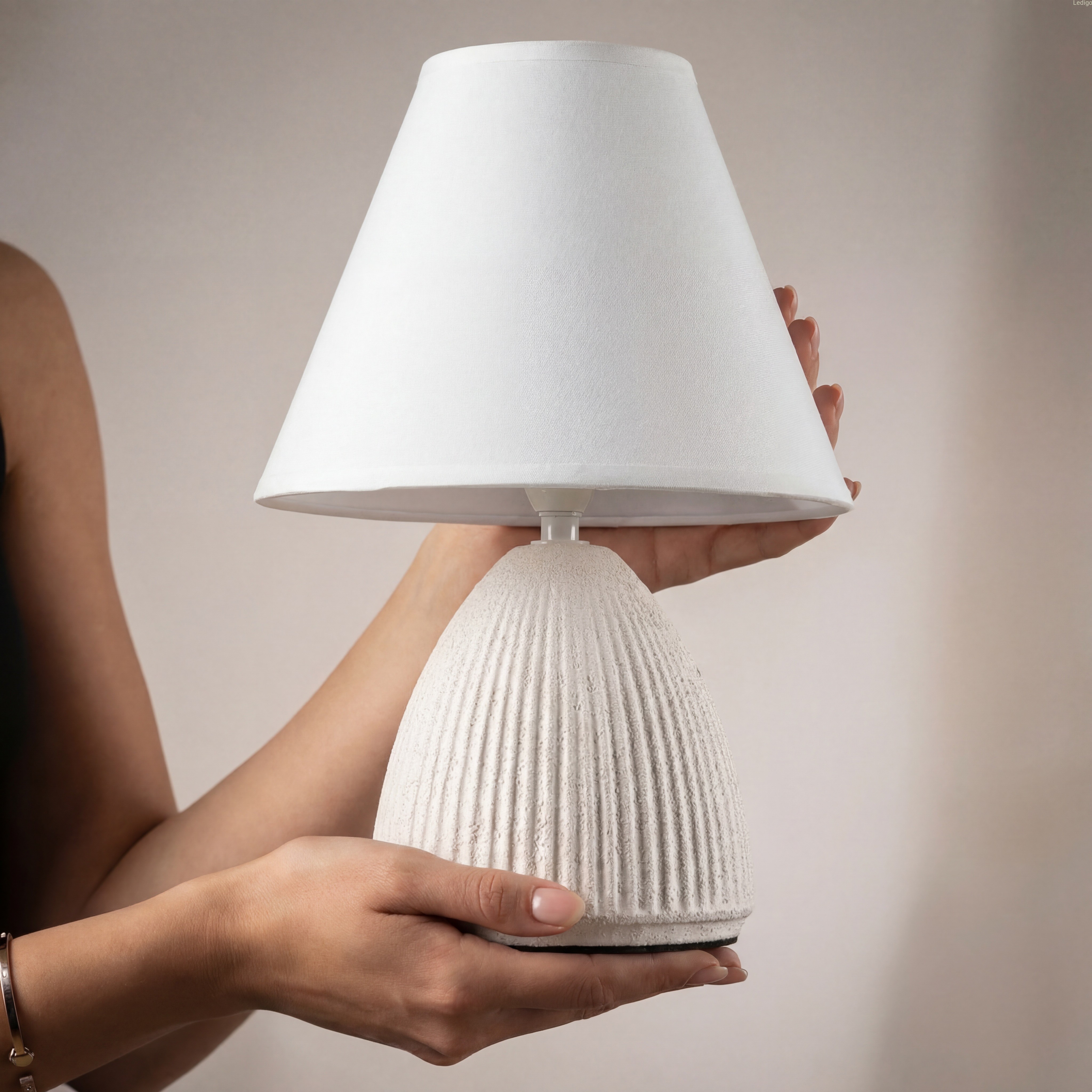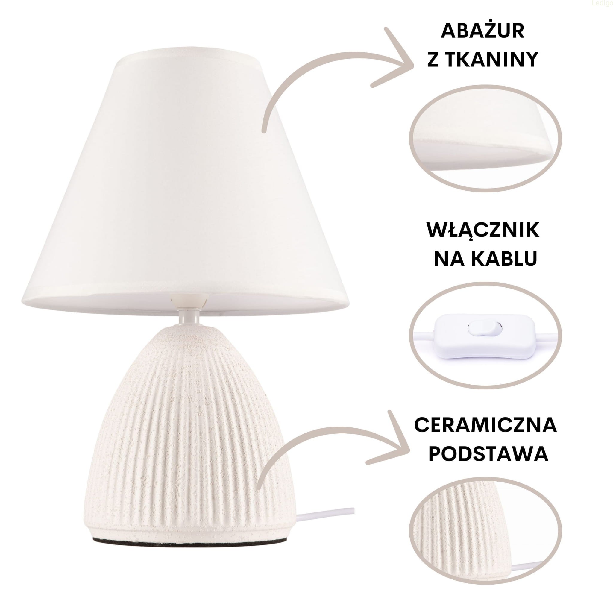 Lampka nocna z abażurem biała ceramiczna ryflowana DION D3