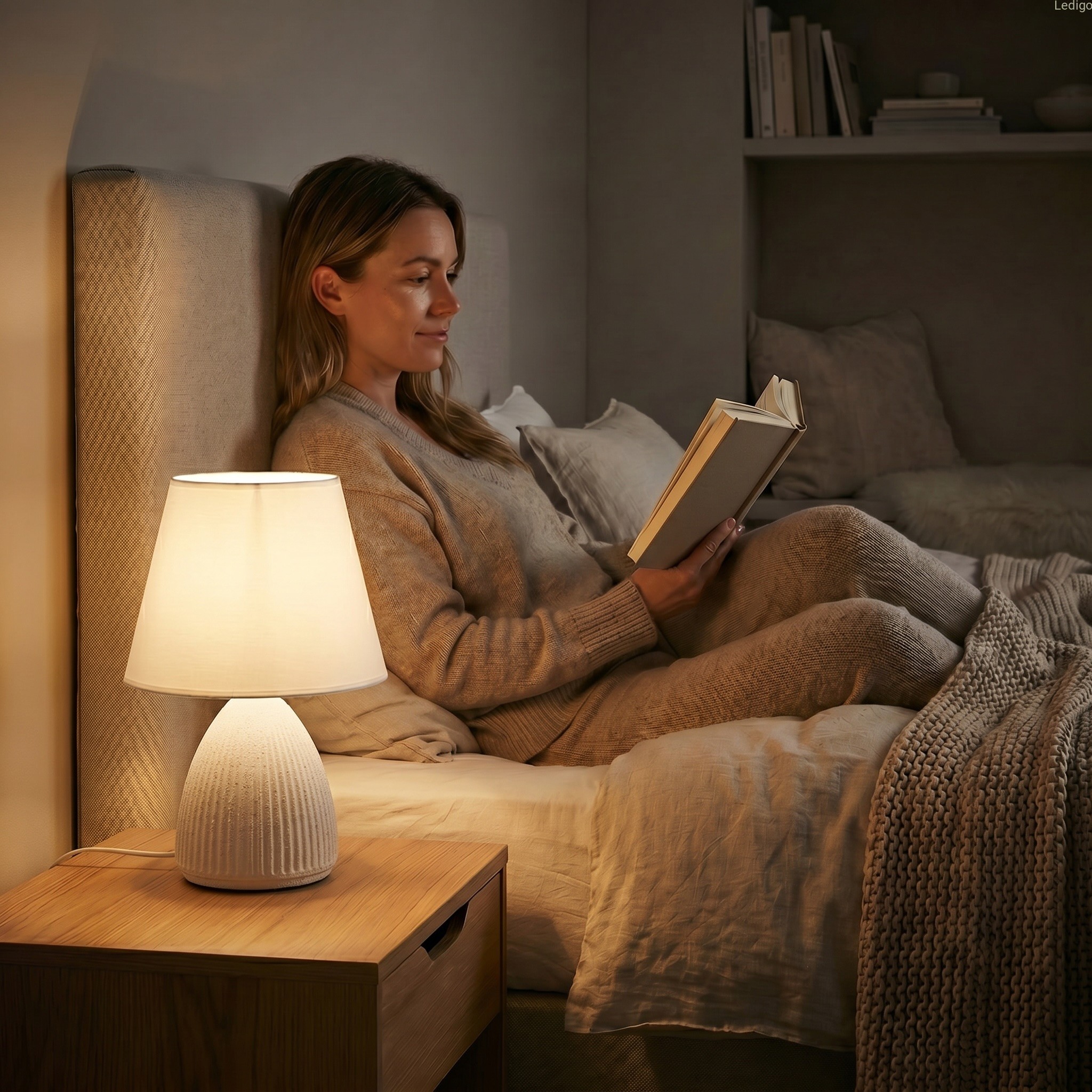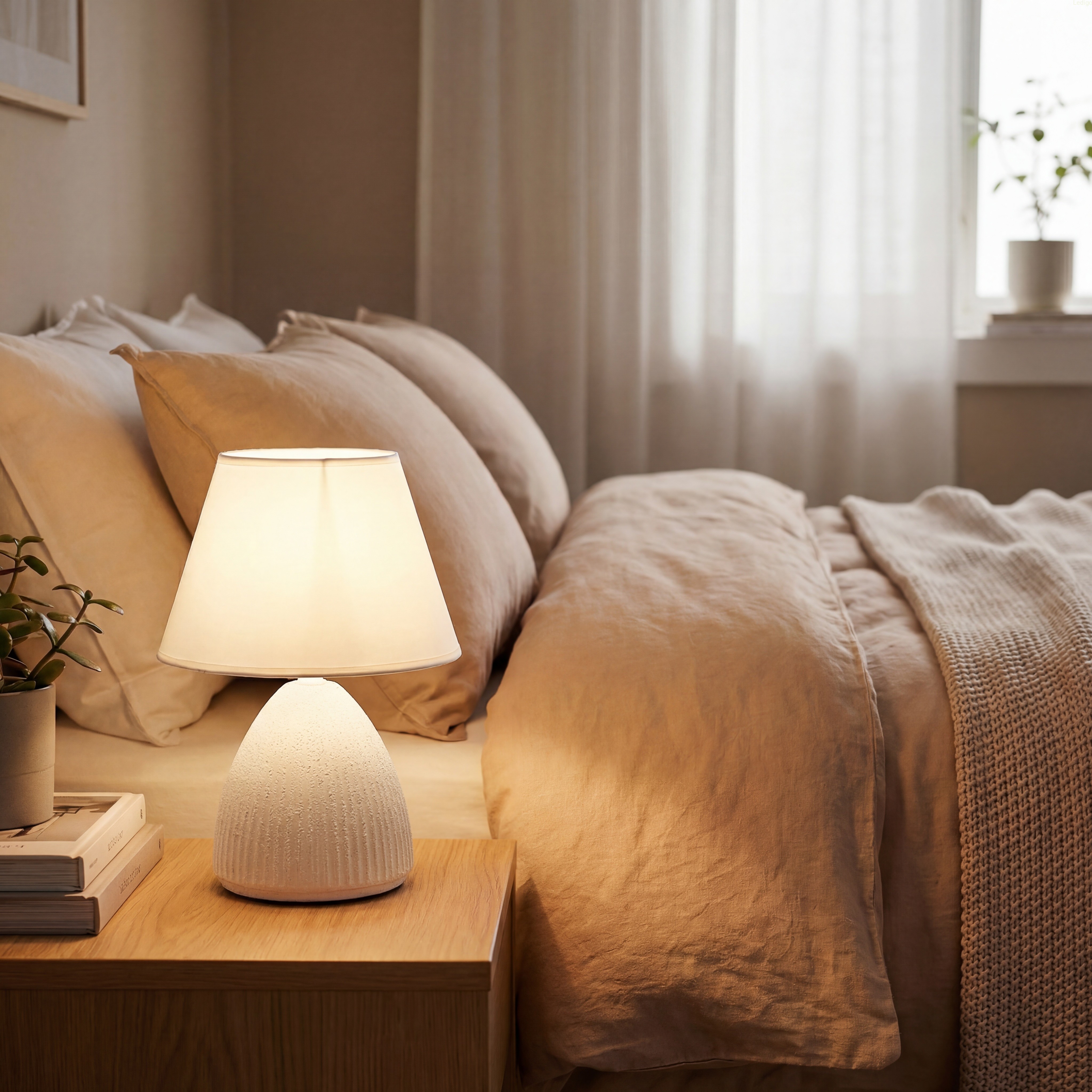 Stwórz klimat w swojej sypialni wybierając ceramiczną lampkę z abażurem.
