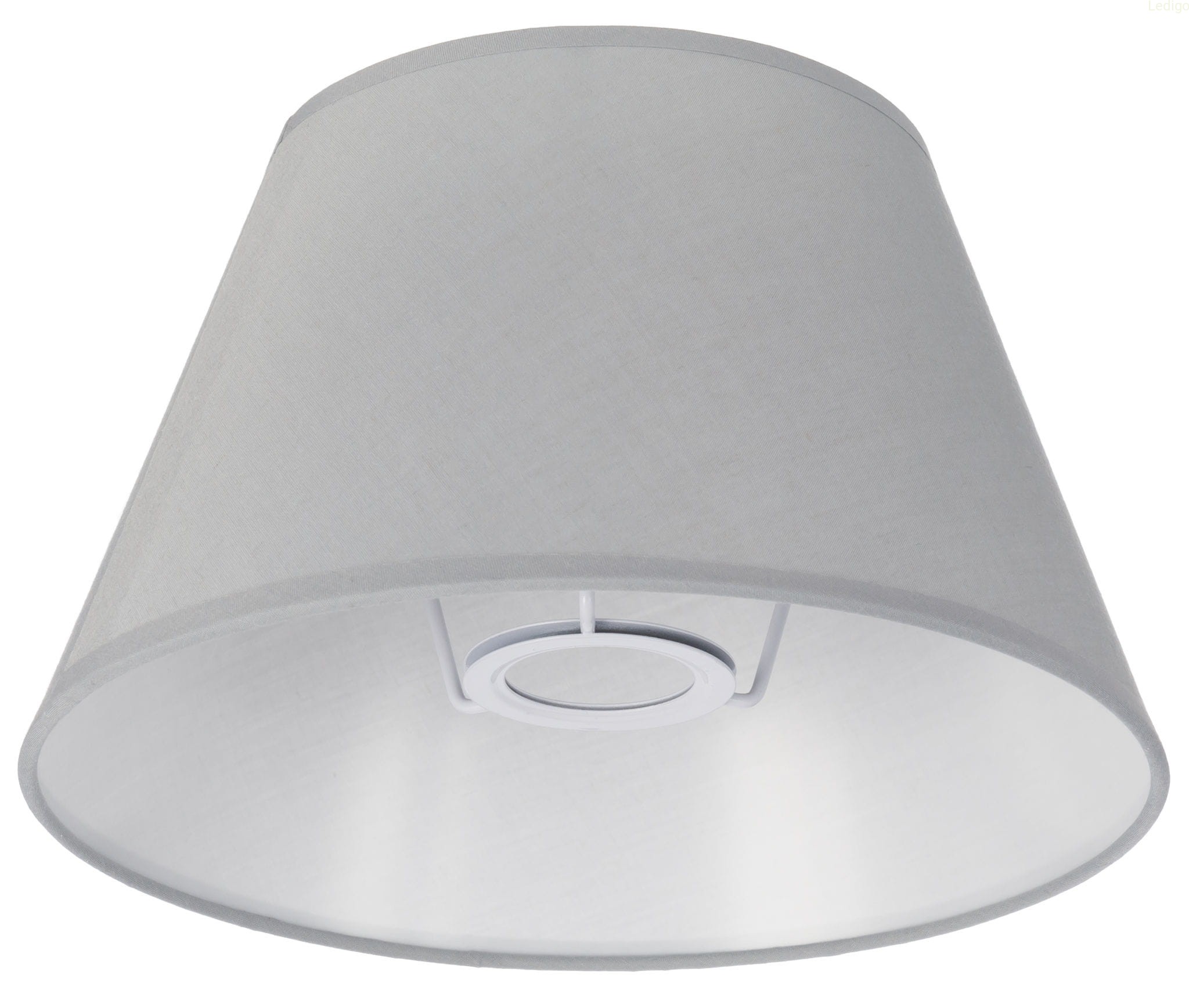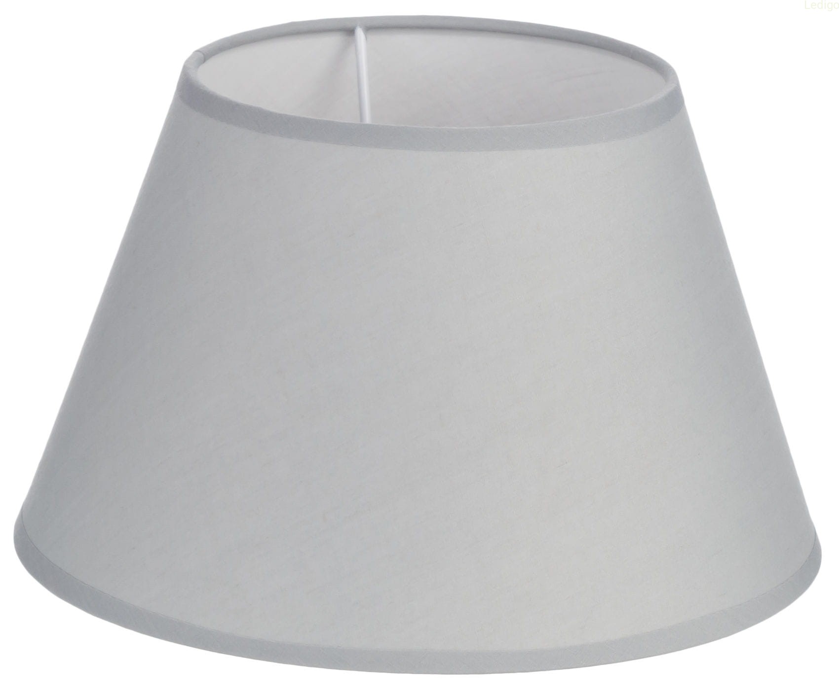 Lampka z szarym abażurem w kształcie stożka, wyposażona w kabel z włącznikiem ON/OFF.