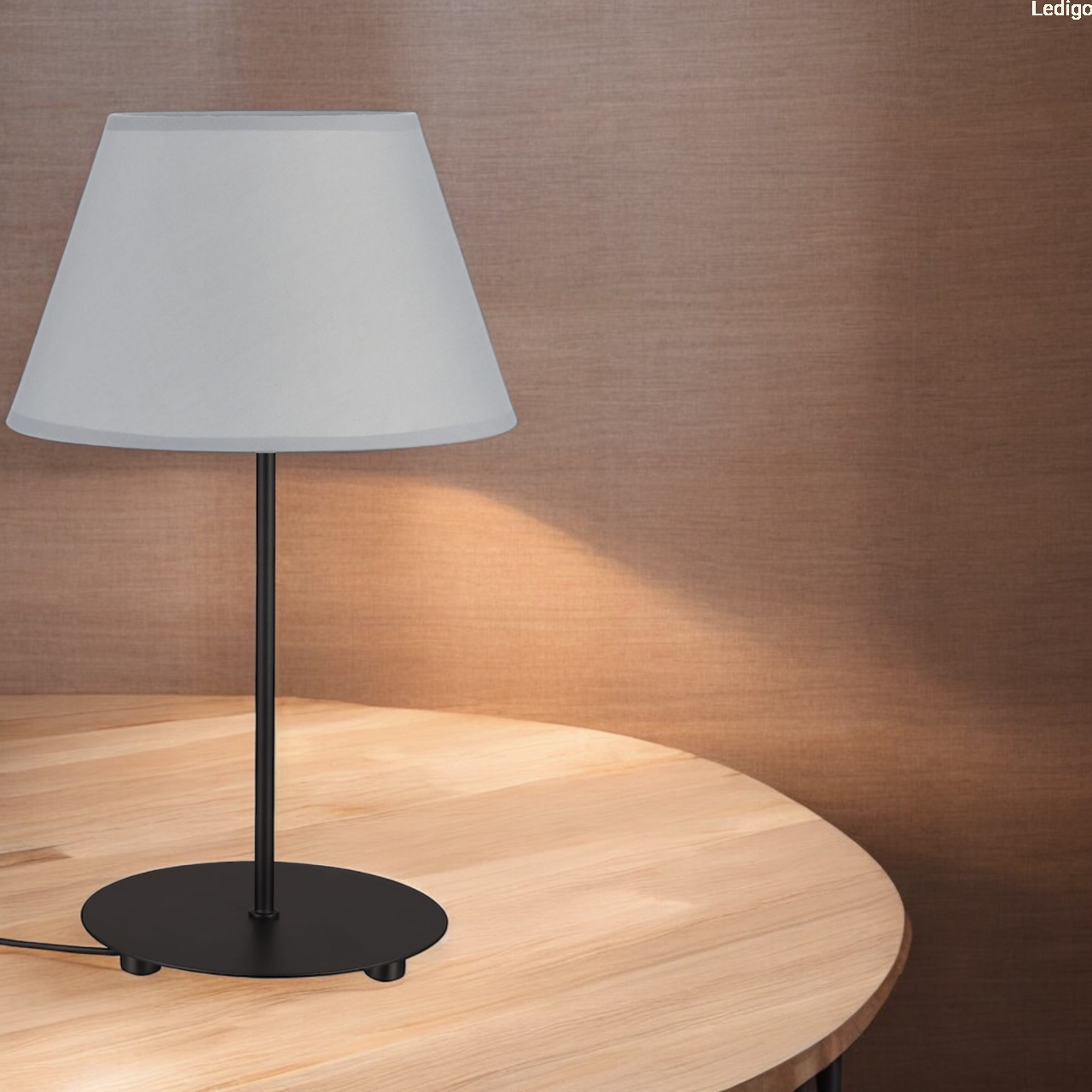 Lampka stołowa czarna abażur stożek szary Karo E27