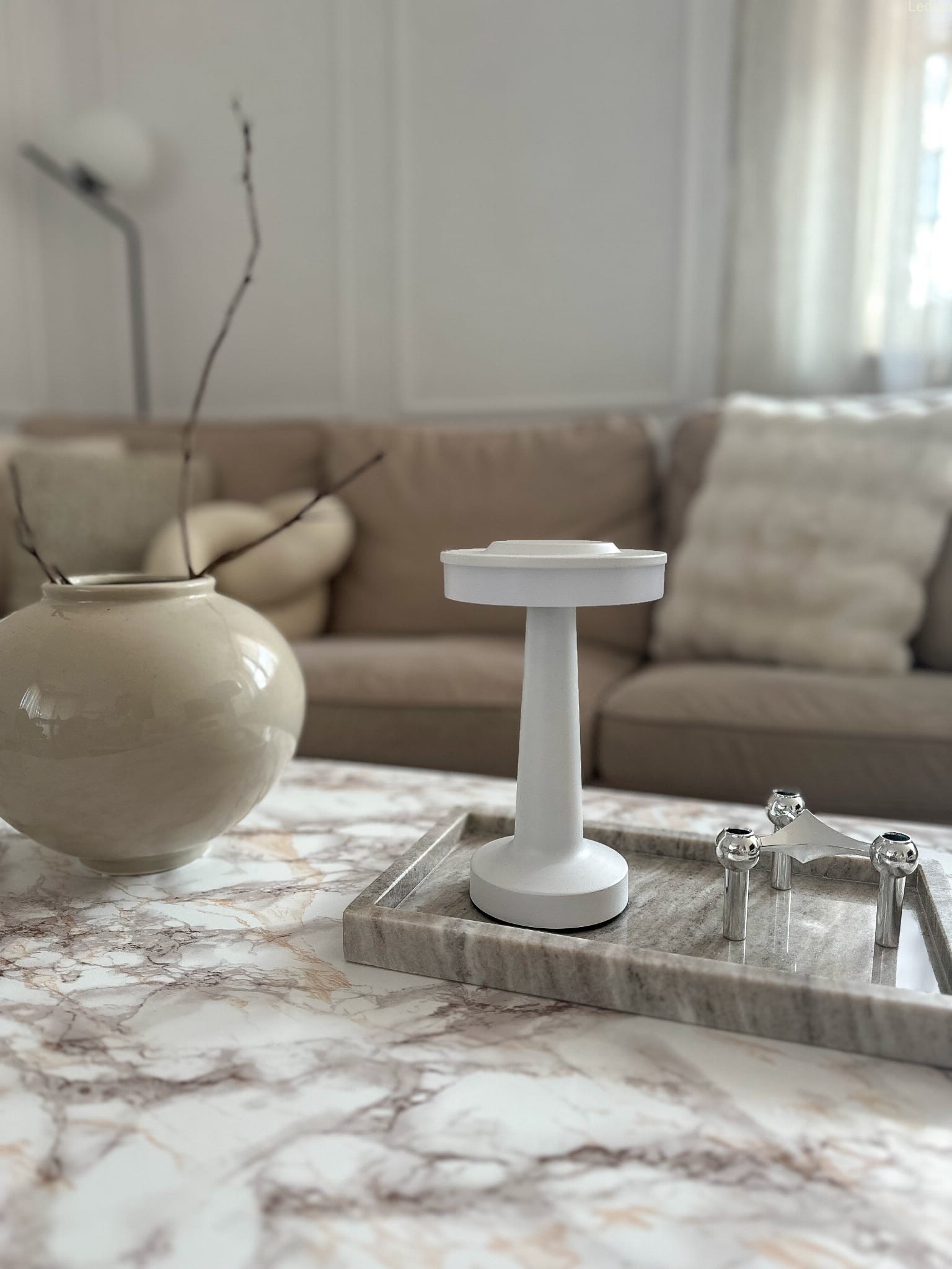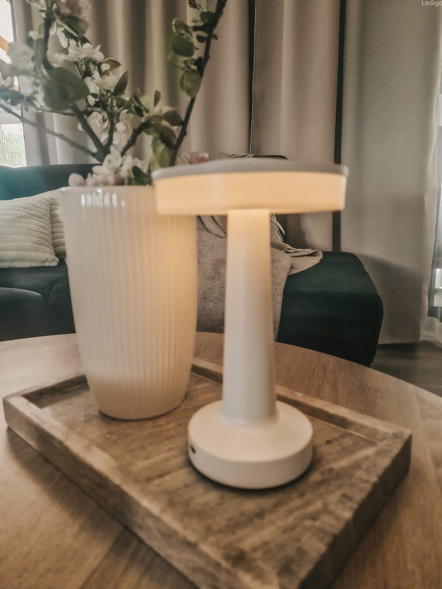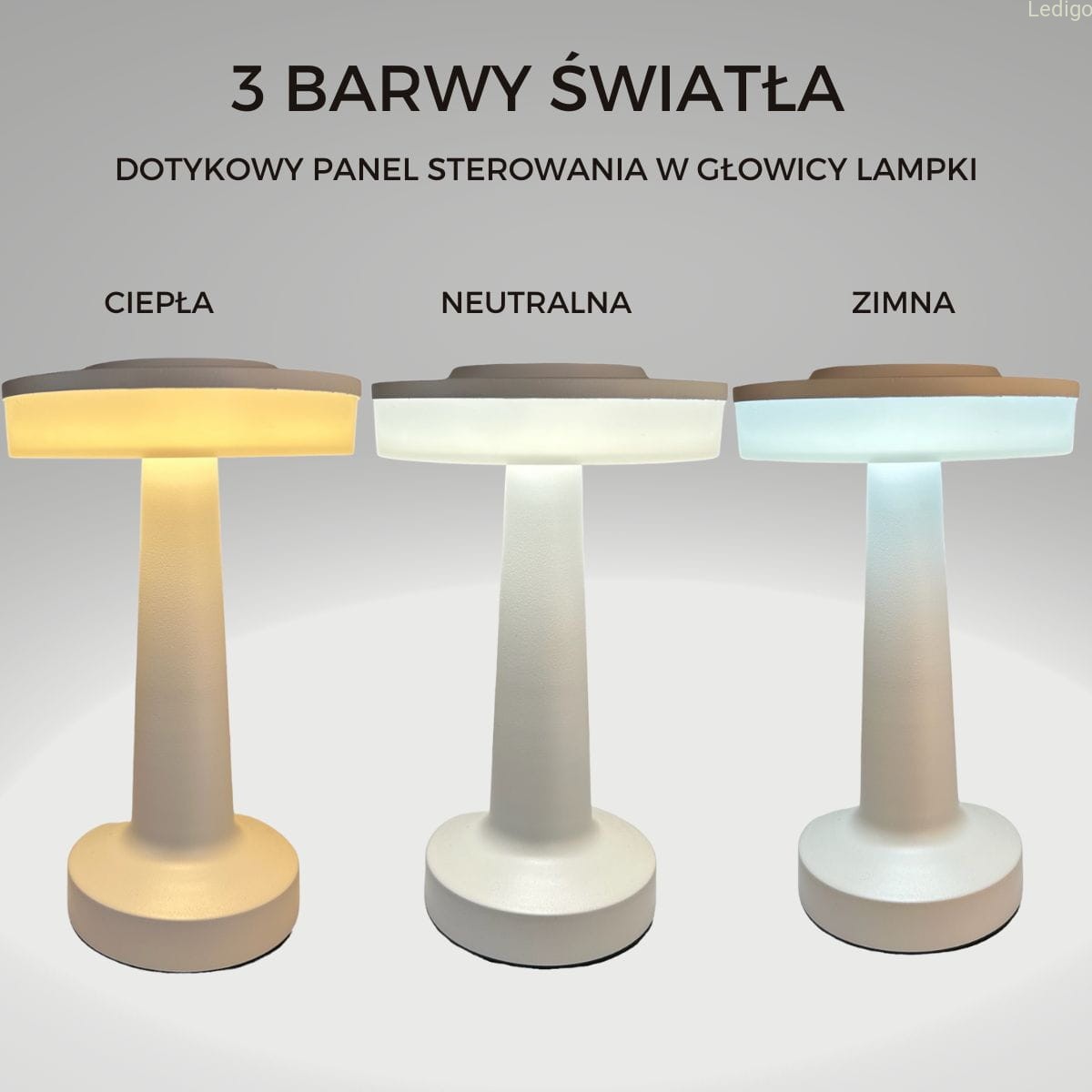 Lampka świeci w trzech barwach: ciepłej, zimnej i neutralnej. Aby zmienić barwę wystarczy lekko uderzyć w górną część lampki.
