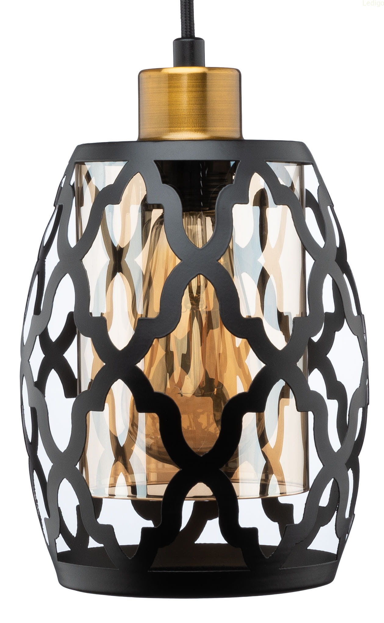 Zewnętrzny klosz posiada laserowo wycięty wzór natomiast wewnętrzne szkło ma przyjemny bursztynowy odcień. Razem tworzą spójną całość a emitowane światło sprawia że oświetlane wnętrze nabiera klimatu.