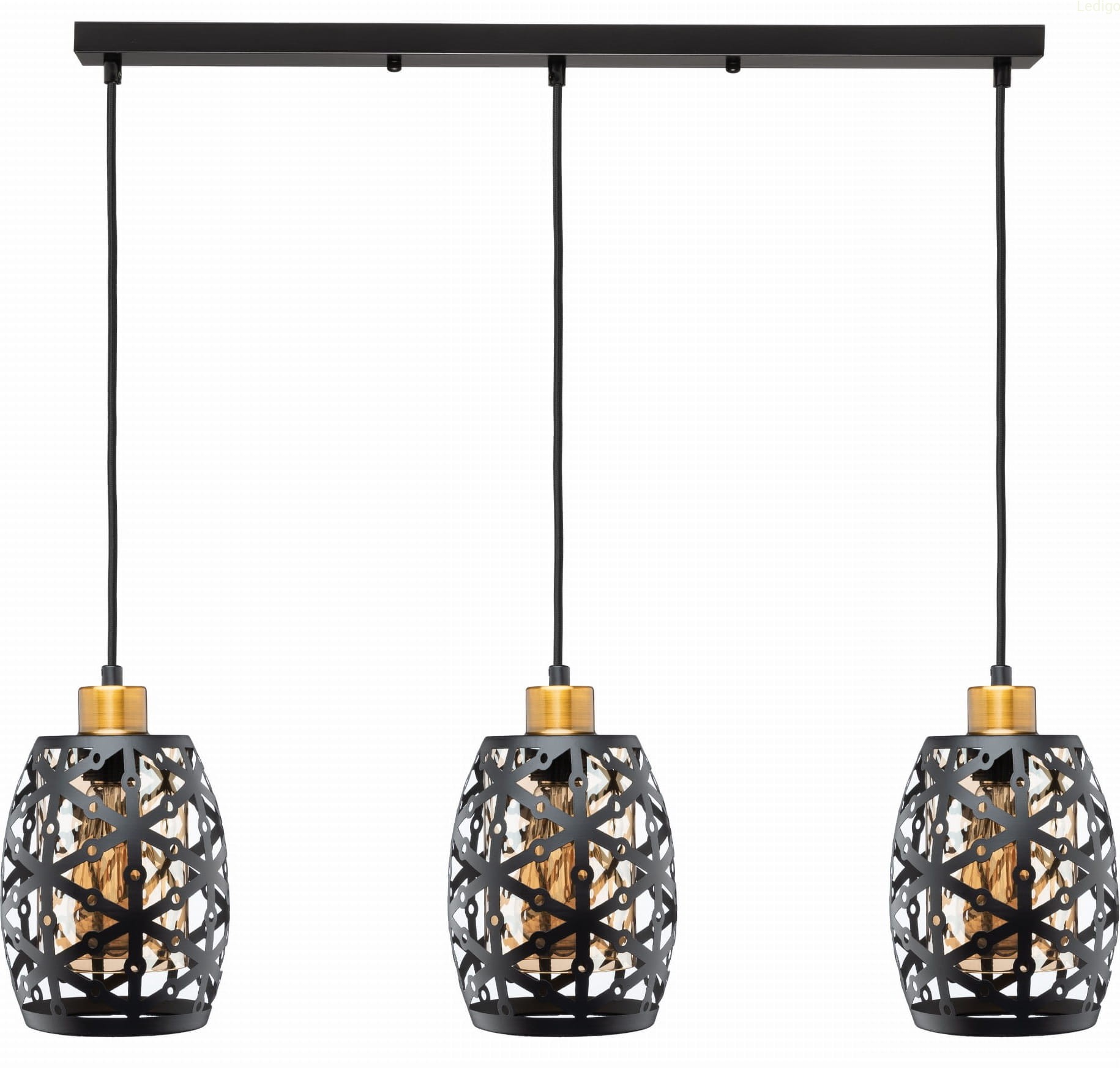 Oprócz klosza lampa wyposażona jest w jakościowe komponenty wykonane z metalu. Podsufitka ma kolor matowej czerni natomiast oprawka jest w pięknym kolorze starego złota. Kabel posiada estetyczny poliestrowy oplot.