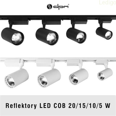 Reflektory szynowe montuje się na szynach oświetleniowych. Każdy z czterech reflektorów posiada diody LED typu COB o mocy 5W i strumieniu świetlnym 420lm co odpowiada tradycyjnej żarówce o mocy 40W. Światło, które wytwarzają posiada neutralną barwę 4000K.