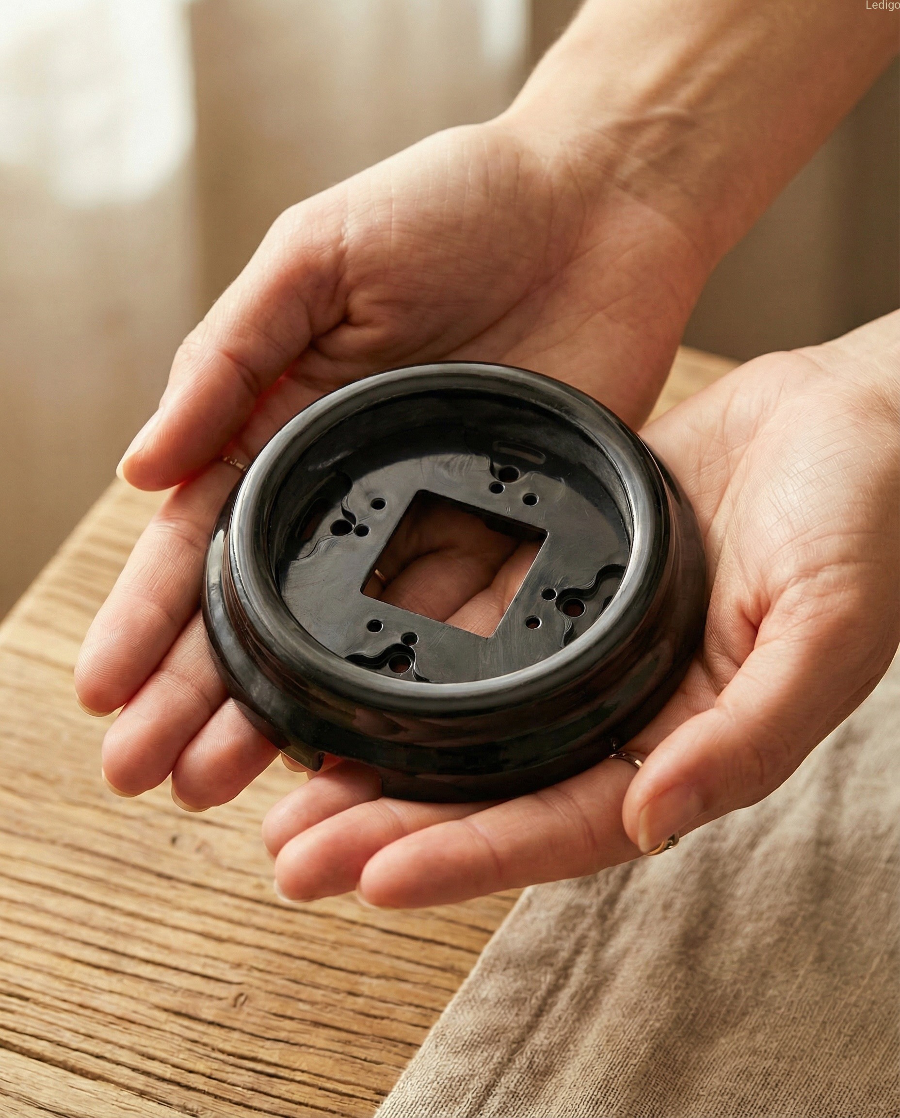 Czarna ramka natynkowa z serii Ceramica to elegancki element wykończeniowy do gniazd i włączników elektrycznych. Głęboka, nasycona czerń, perfekcyjnie gładka powierzchnia i minimalistyczna forma nadają instalacji nowoczesny, architektoniczny charakter. To rozwiązanie stworzone dla wnętrz, w których kontrast, detal i jakość wykonania definiują styl przestrzeni.