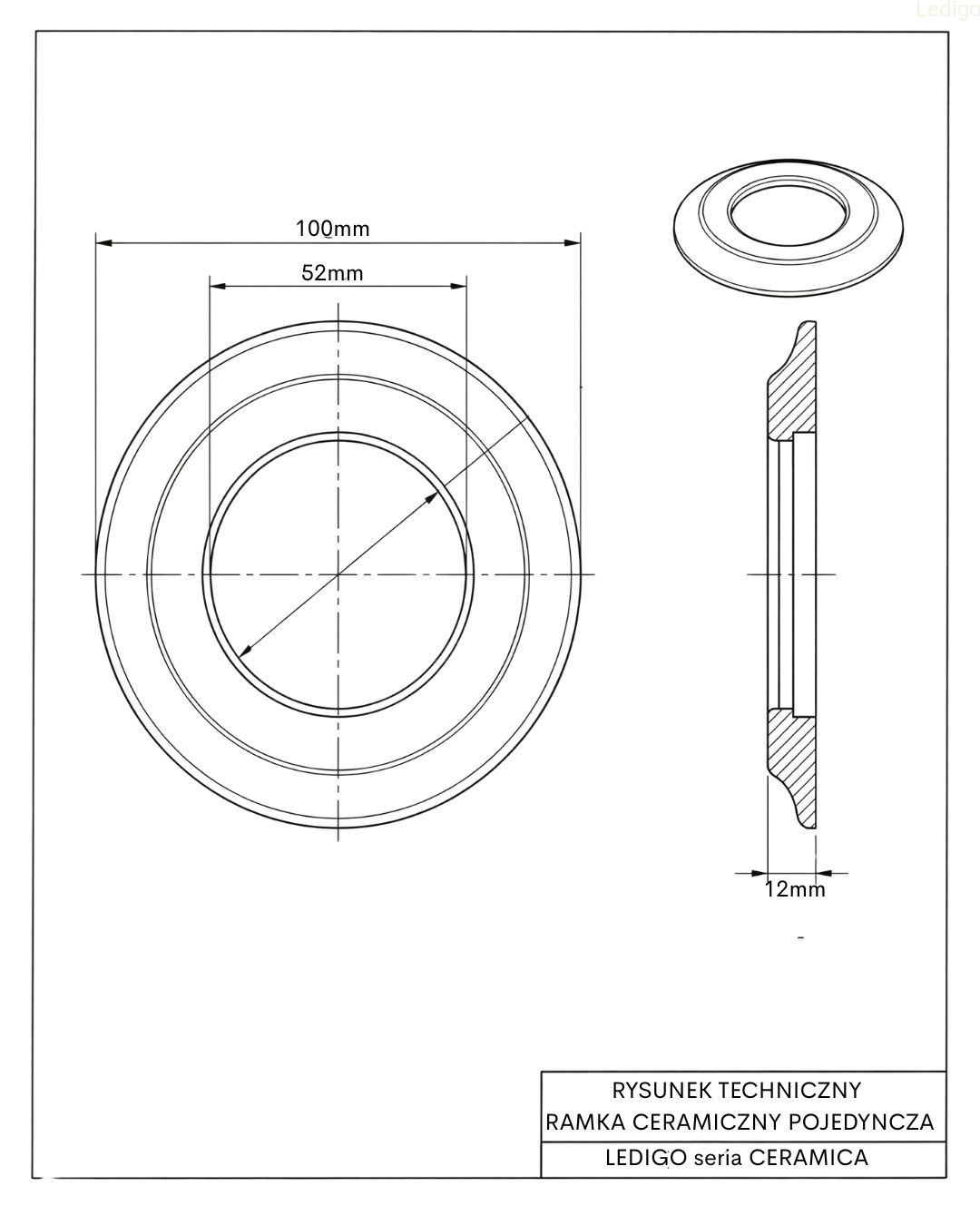 | Wymiary | średnica 100mm, średnica otworu montażowego 52mm, głębokość ramki 12mm |