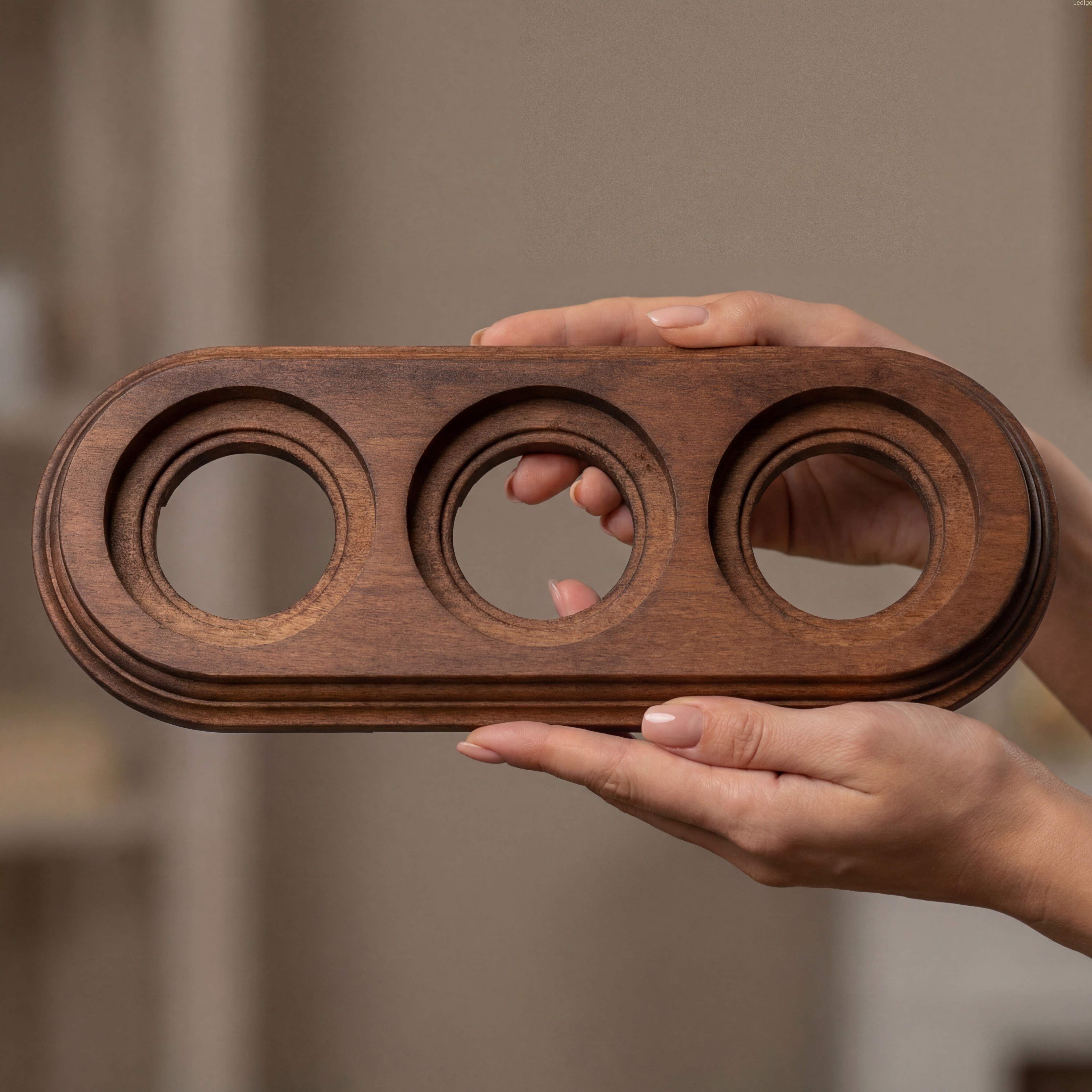 Potrójna drewniana ramka natynkowa do gniazd i włączników w kolorze palonego orzecha to ekologiczne rozwiązanie łączące naturalne materiały, rzemieślniczą jakość i elegancki design. Ramka drewniana potrójna została zaprojektowana do montażu trzech modułów elektrycznych, umożliwiając estetyczne i spójne wykończenie instalacji w przestrzeniach mieszkalnych oraz komercyjnych.