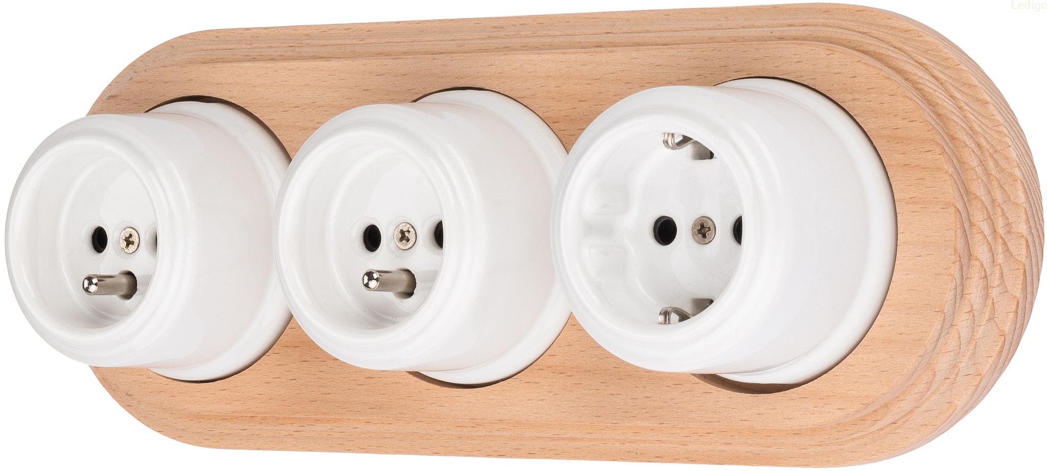 Potrójna ramka drewniana do gniazd i włączników natynkowych