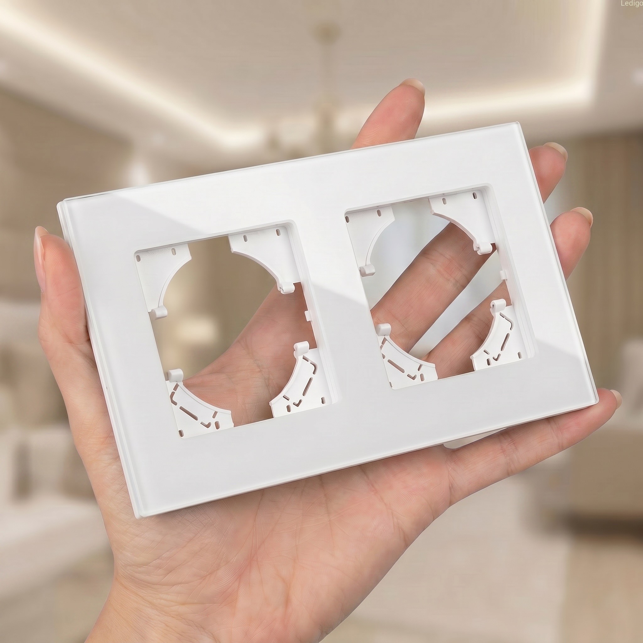 Szklana ramka podwójna marki Ledigo to element osprzętu elektroinstalacyjnego, który łączy nowoczesny design z funkcjonalnością.