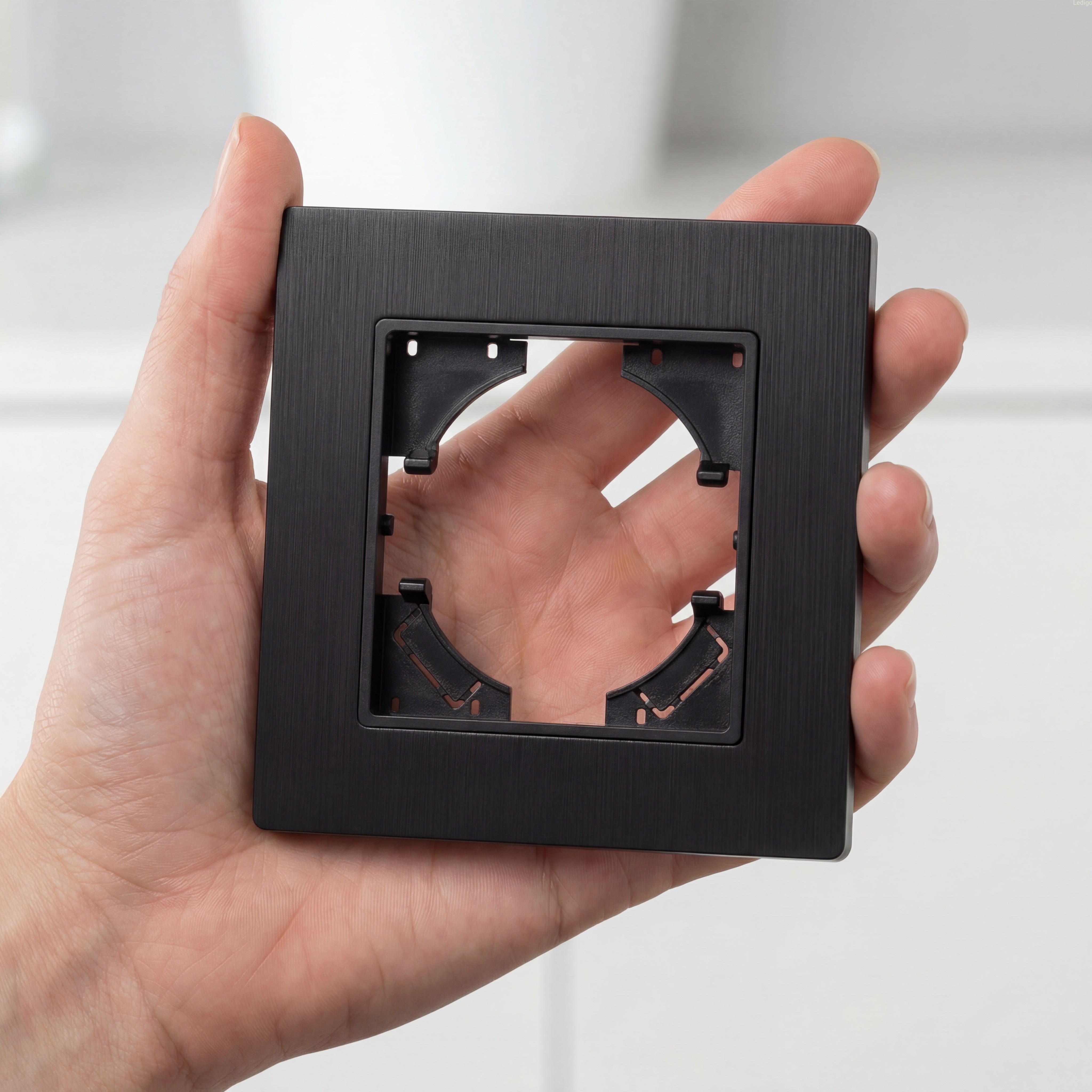 łatwość utrzymania czystości - dzięki szczotkowanej strukturze (delikatne, linearne żłobienia na powierzchni), odciski palców są na niej znacznie mniej widoczne niż na gładkich, błyszczących ramkach z innego tworzywa czy szkła. To duży plus w miejscach często używanych, jak włączniki światła.
