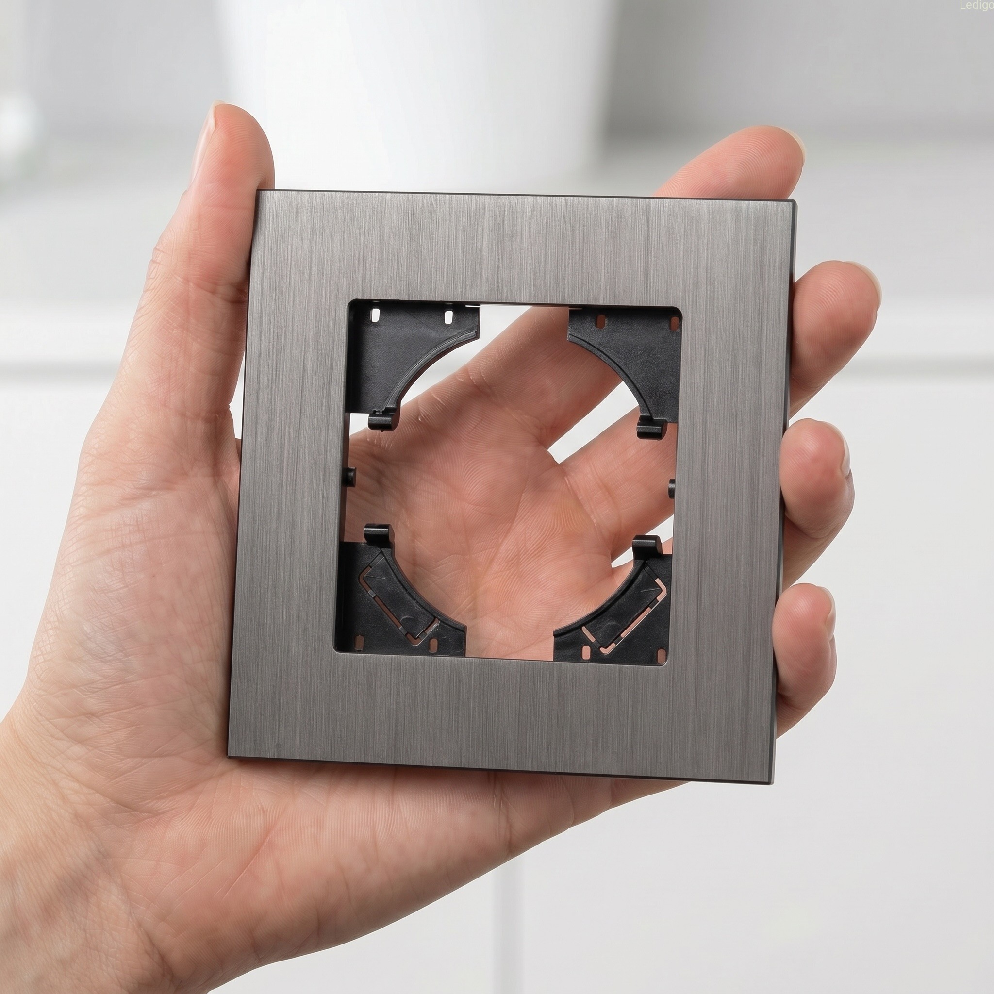 łatwość utrzymania czystości - dzięki szczotkowanej strukturze (delikatne, linearne żłobienia na powierzchni), odciski palców są na niej znacznie mniej widoczne niż na gładkich, błyszczących ramkach z tworzywa czy szkła. To duży plus w miejscach często używanych, jak włączniki światła.
