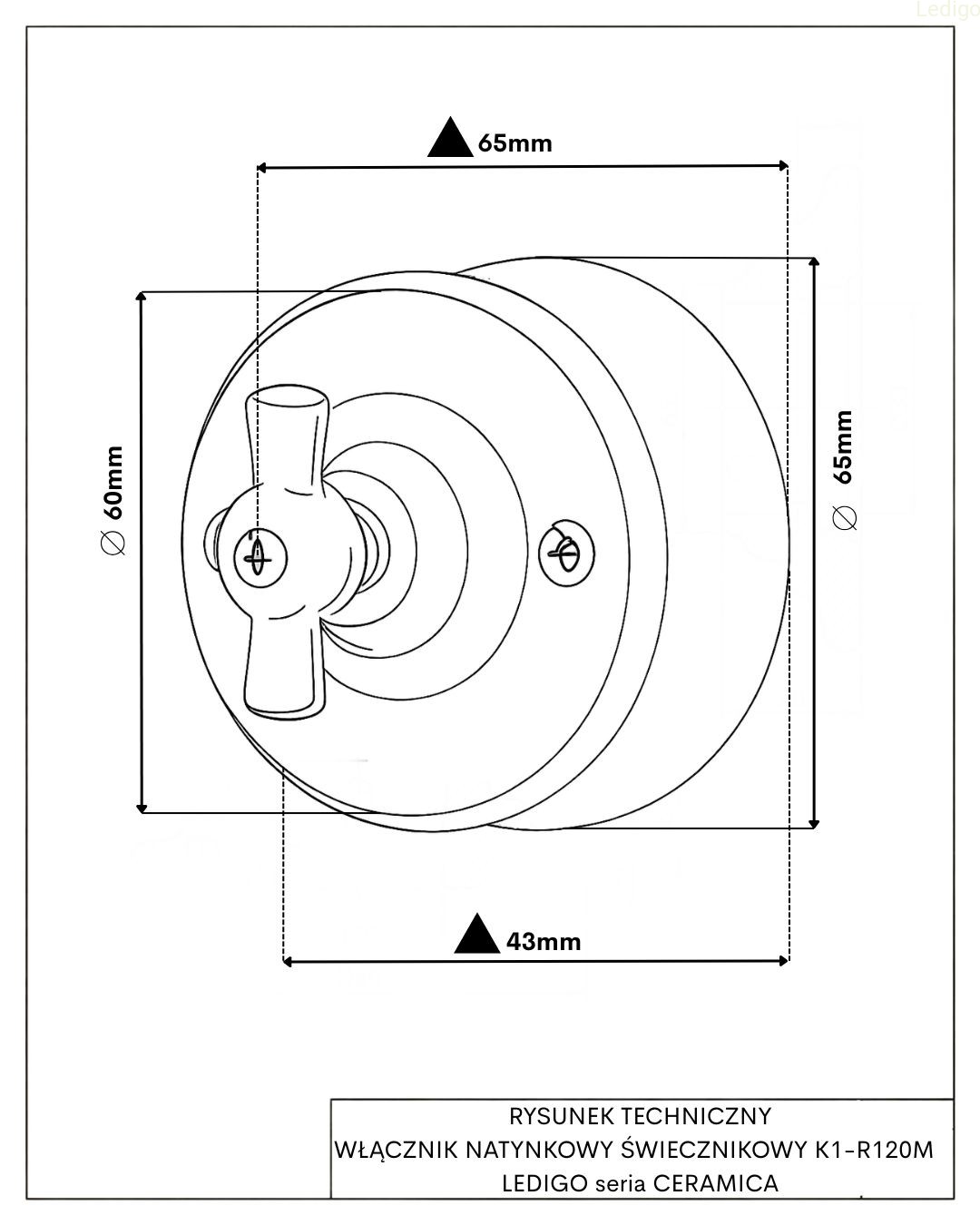 Włącznik natynkowy ceramiczny świecznikowy obrotowy biały Ledigo K1-R120M
