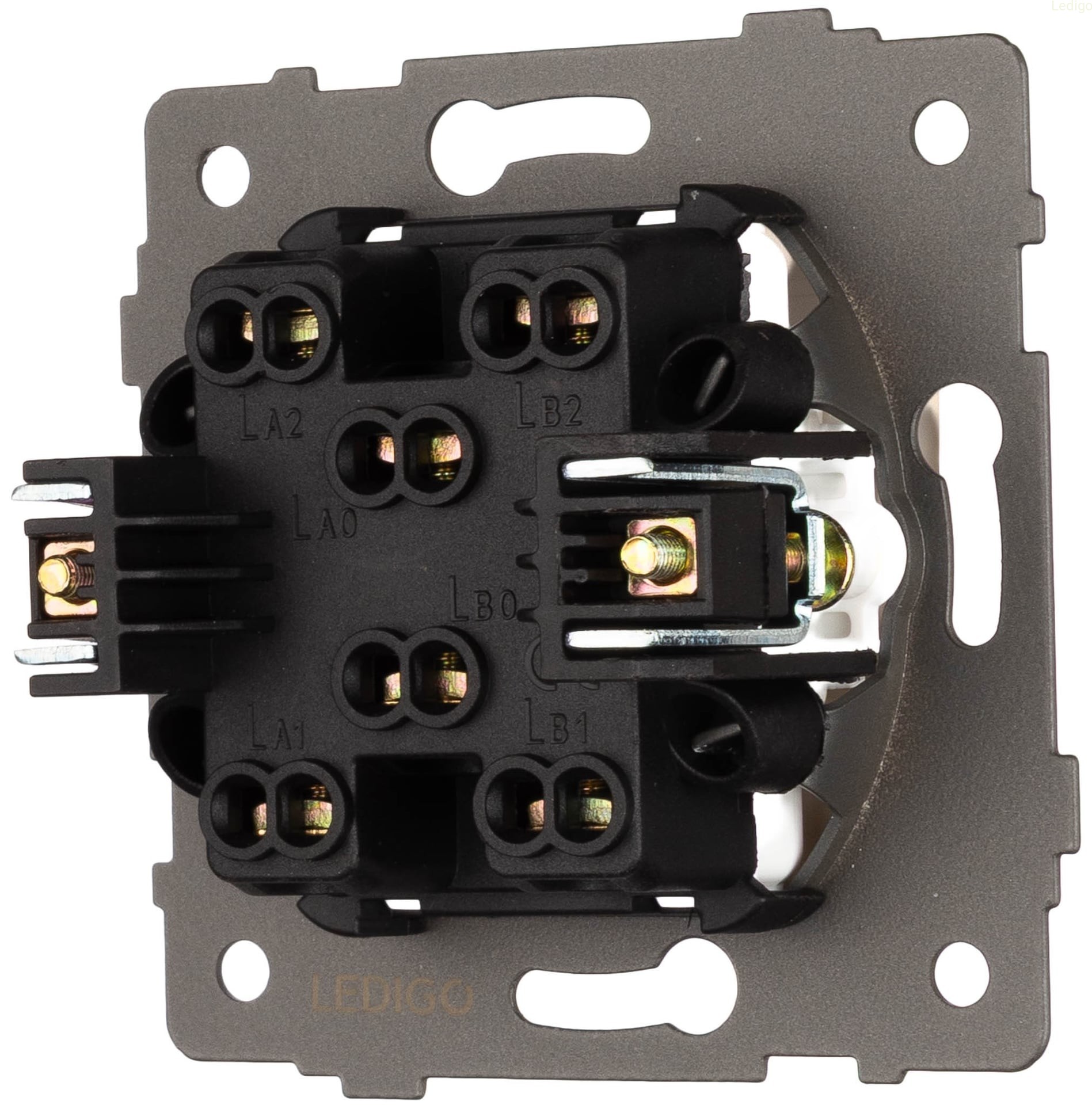 • Funkcja schodowa - łączy w sobie cechy włącznika świecznikowego (podwójnego) oraz schodowego. Pozwala on na niezależne sterowanie dwoma obwodami oświetlenia z dwóch różnych miejsc (np. z góry i dołu schodów lub obu końców korytarza)